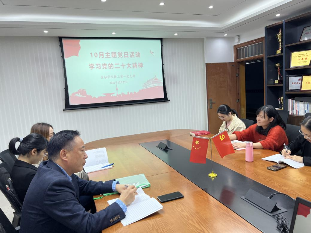 教工第一党支部在学院党员之家举行学习党的二十大精神主题党日活动。此次活动由支部书记金骋路主持,学院党委书记蔡国金莅临出席。