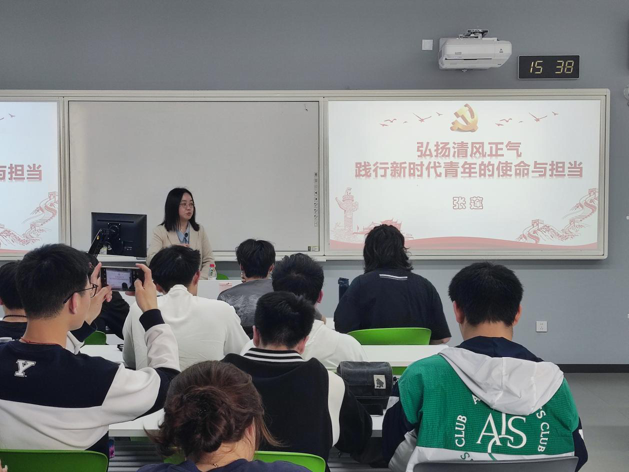 张莲以《弘扬清风正气,践行新时代青年的使命和担当》为主题,为同学们讲述了清廉的重要性,告诫我们要把清廉建设作为终身课题。从国家层面、行业层面、省域层面、学校层面、国际层面、个人层面六个层面为我们讲述了应该怎样做好清廉建设。“大道笃行远,清廉继世长”,在清廉上出问题,就是对人生的“一票否决”,作为新时代青年,我们应该干净干事,清白做人。