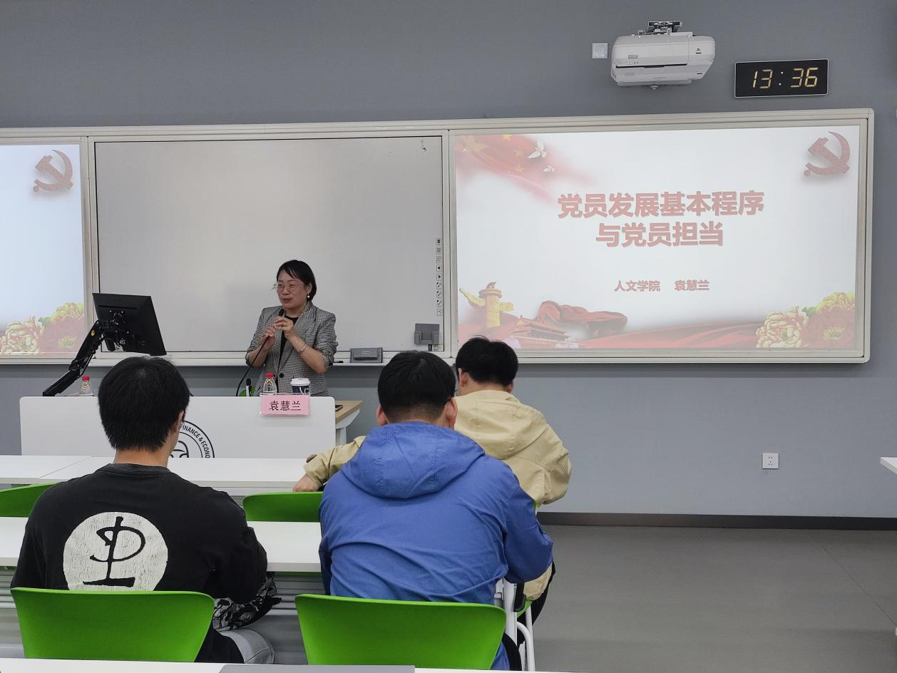 袁慧兰以《党员发展基本程序与党员担当》为主题,为我们介绍了党员发展的不同阶段与基本程序,让同学们更加深入地了解了入党程序以及在入党过程中要严于律己。此外,她还向同学们强调了党员的责任与担当,要求同学们在政治上要胸怀祖国、培养良好的政治素养;在道德上要谦和待人、做良善之人;在工作上要认真负责、乐于助人。希望同学们在入党过程中严格要求自己,以更加优秀的姿态向党组织靠近。