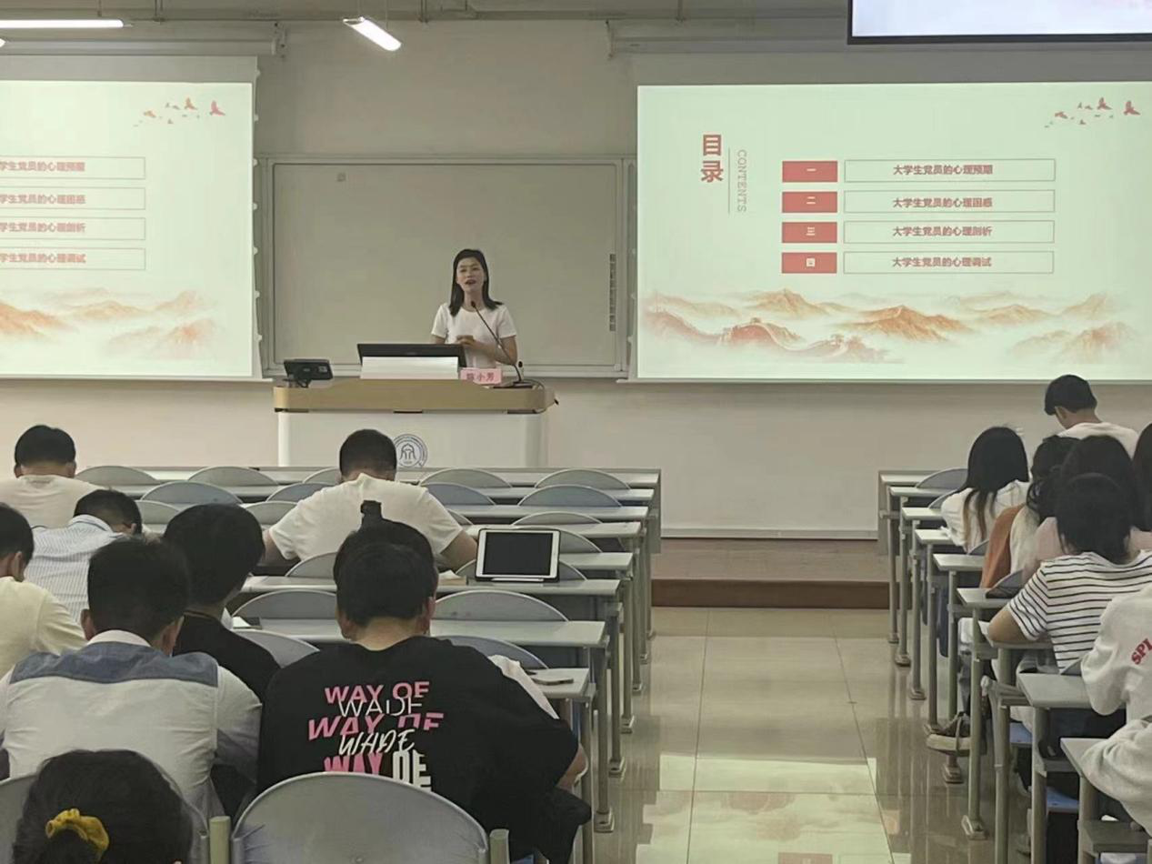 陈小芳以《大学生党员的心理调适》为主题,她首先向同学们介绍了一些大学生党员可能存在的心理困惑,然后从社会环境、教育培养、个人局限性三个方面对大学生党员的心理进行剖析,最后提出要用政策制度、新媒体等加强对大学生党员的心理引导;高校要重视与开设相关课程以增强大学生党员心理素质;大学生党员本身提升抗挫折能力与培养积极的心态。希望在各方共同努力下,大学生党员的心理素质可以巩固与加强,以更好地应对挫折。
