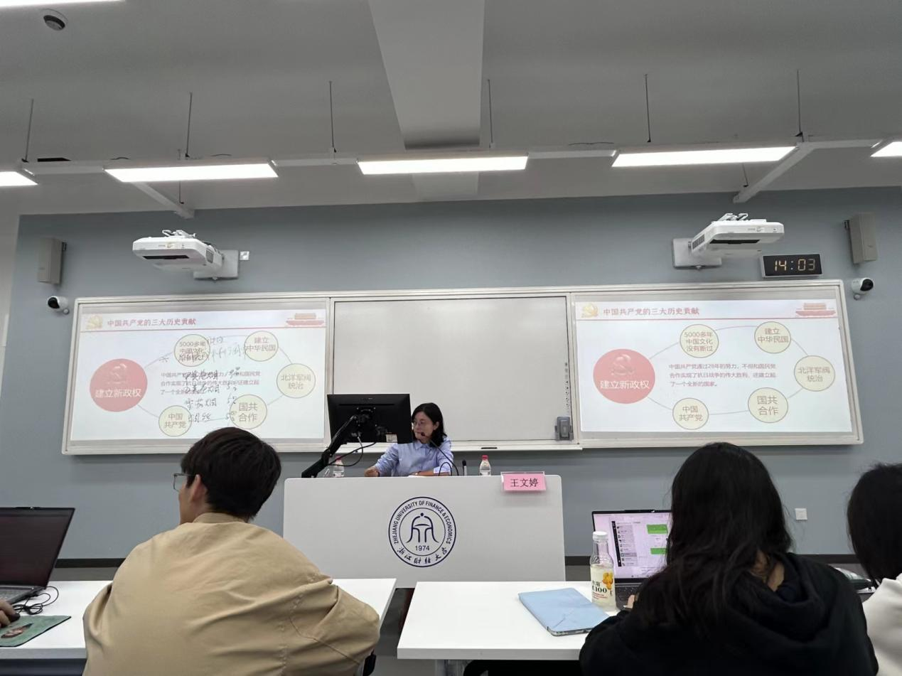 陈思佳围绕《以中国式现代化全面推进中华民族伟大复兴——学习党的二十大精神》的主题,向同学们介绍了中国过去五年取得的16个方面的成就,包含了最具标志性意义的6个方面,以及中国发生的3件大事。告诉我们要把学习贯彻二十大精神与学校全面推进特色鲜明的一流财经大学结合起来,为此,我们必须坚持和加强党的全面领导,坚持中国特色社会主义道路,坚持以人民为中心的发展思想,坚持深化改革开放,坚持发扬斗争精神。