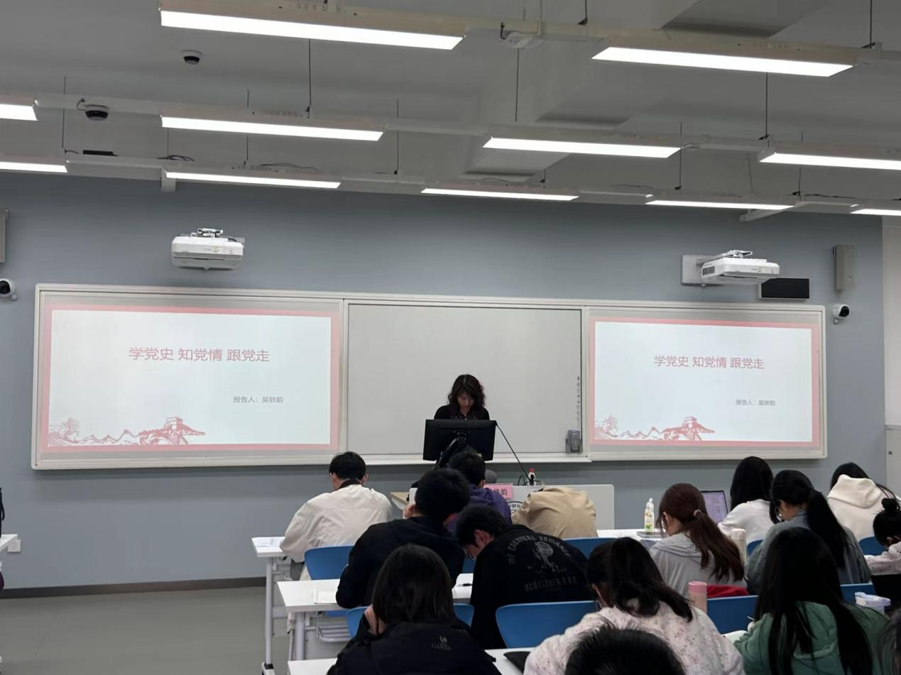 吴轶韵以《学党史 知党情 跟党走》为主题,带领同学们回顾了党的光辉历程,深入了解党的奋斗历史。党史的学习不仅激发了同学们的历史认同感与国家使命感,而且让同学们在党的光辉历程中汲取到了经验教训,培养起更加完善的政治素养和道德观念。最后,老师希望同学们能够跟党走,传承红色基因,积极投身到新时代的伟大事业中,为实现中华民族伟大复兴的中国梦贡献自己的力量。