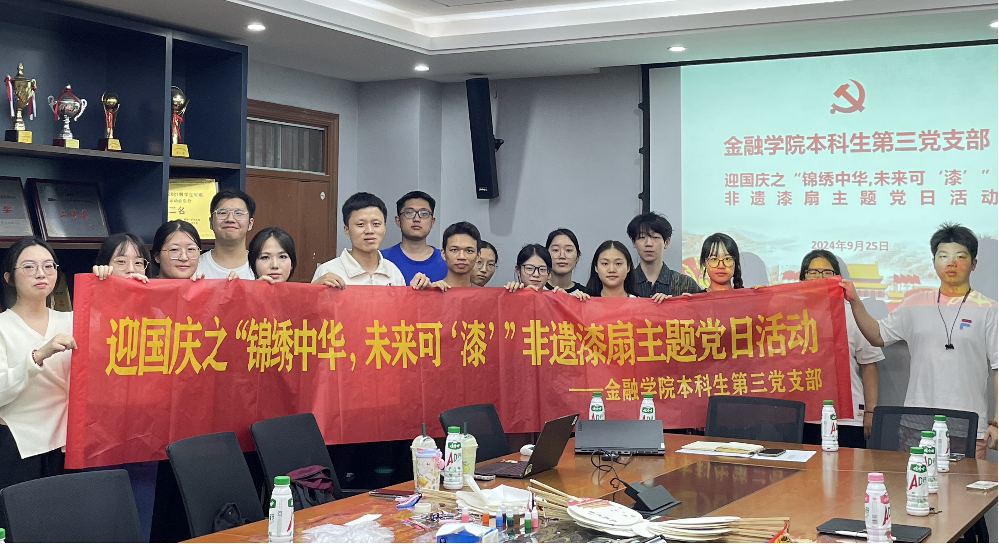 随后,党支部开展了迎国庆之“锦绣中华,未来可‘漆’”非遗漆扇主题党日活动。国庆佳节,铭记着国家的诞生与辉煌历程,激励着每一代人不忘初心、砥砺前行。通过非遗漆扇,向祖国母亲献上了最诚挚的祝福,也深刻感受到了中华文化的博大精深与独特魅力。“锦绣中华,未来可‘漆’”不仅仅是一句响亮的口号,更是对祖国美好未来的坚定信念和美好祝愿。