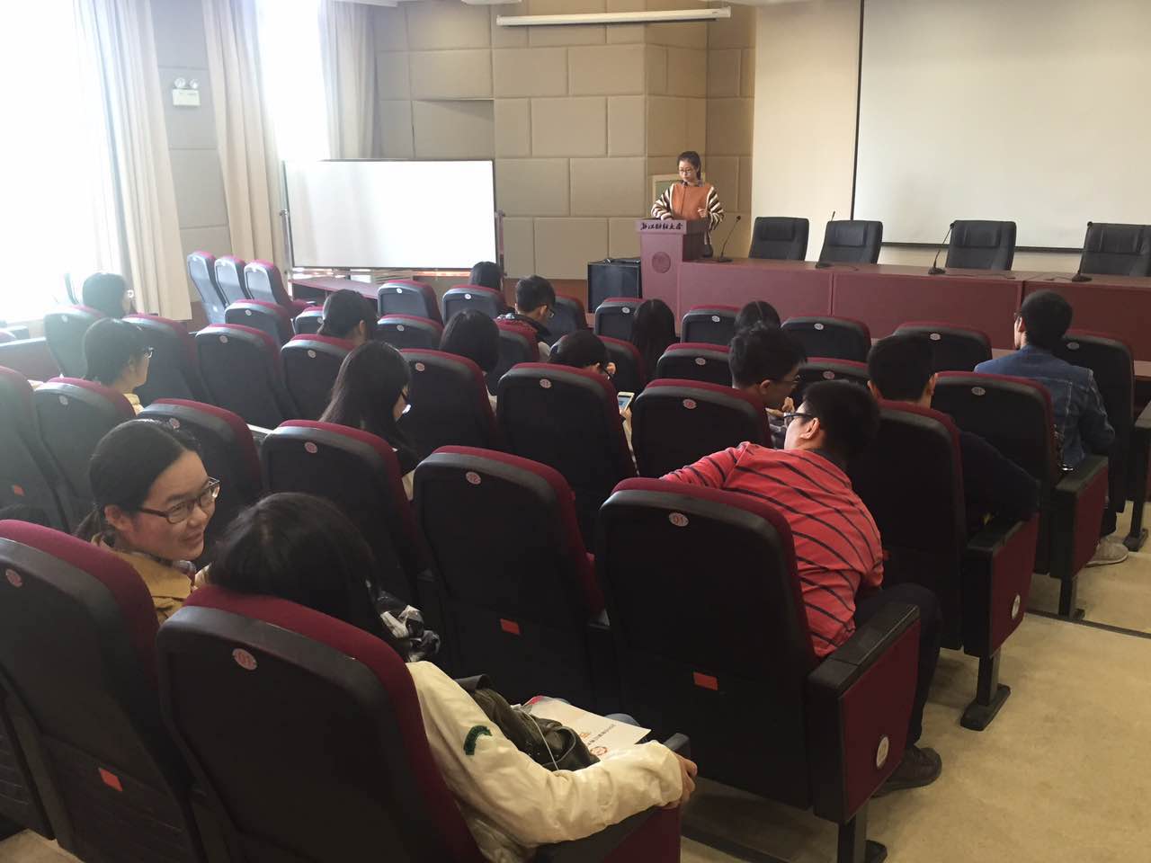 楼202学术报告厅举行了CFA考试及学习经验交流会,CFA相关负责人及高顿财经老师、2015级、2014级CFA考试实验班同学参加了会议。会议由徐函老师主持并发言,2013级CFA实验班班长周前同学分享了自己的考试经验,她是水果派