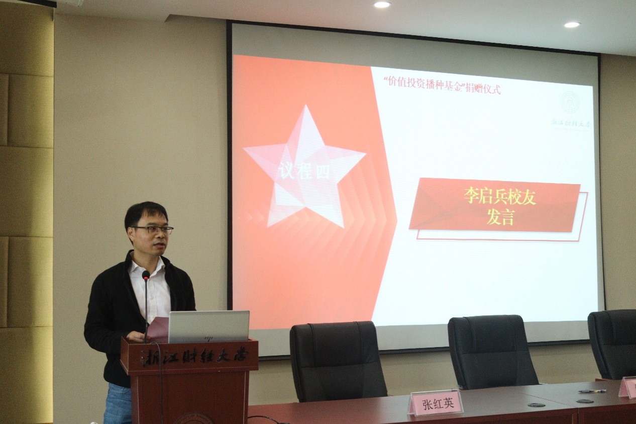 李启兵表示,投资是每个人一生的必修课,认真学好这门课使人终身受益。他希望通过设立价值投资播种基金,助力投资课程建设,打造一流教师团队,在学生心中播撒投资智慧,实现价值满满的梦想。