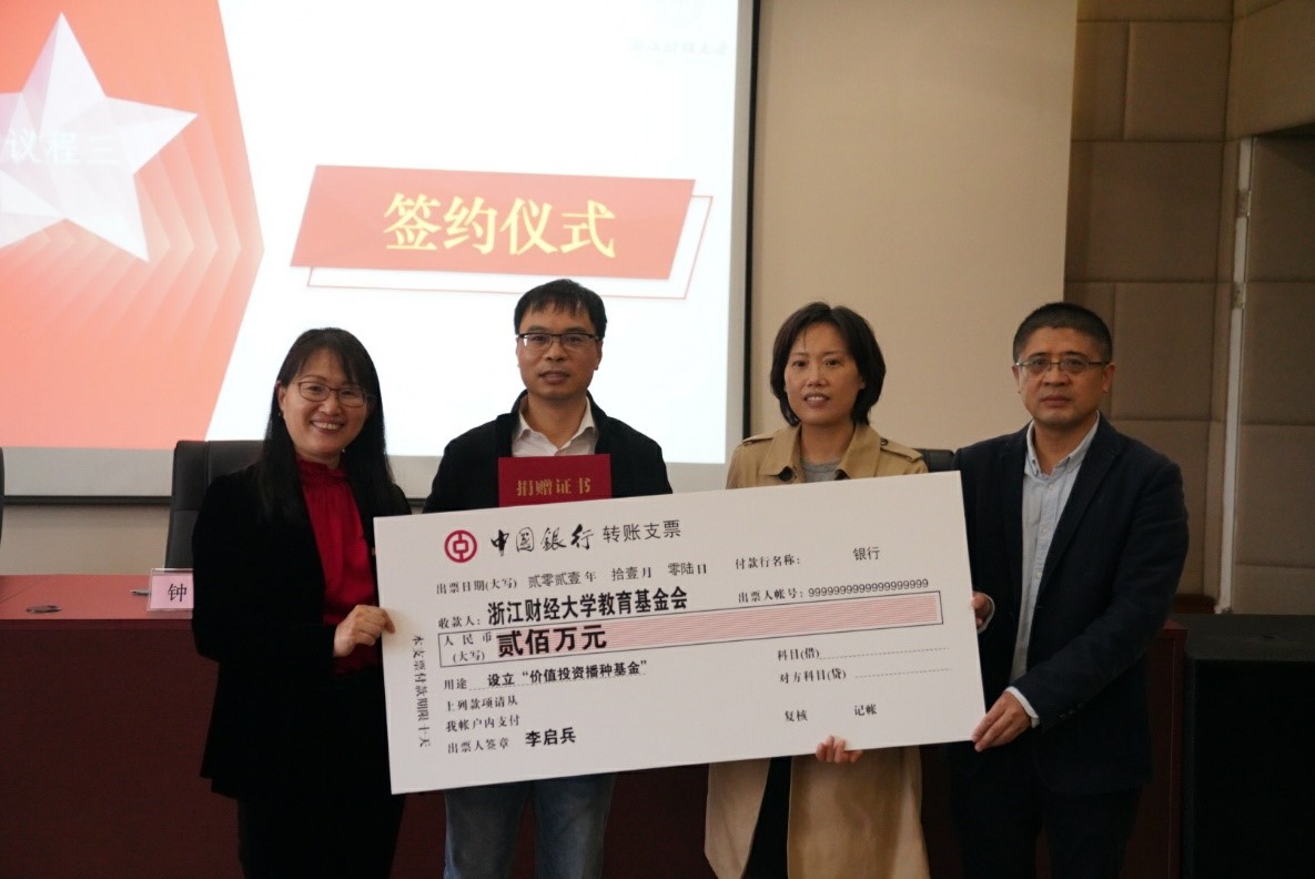 捐赠200万元,设立“价值投资播种基金”,用以支持学院教育事业发展。校党委委员、纪委书记孙旭东、水果派