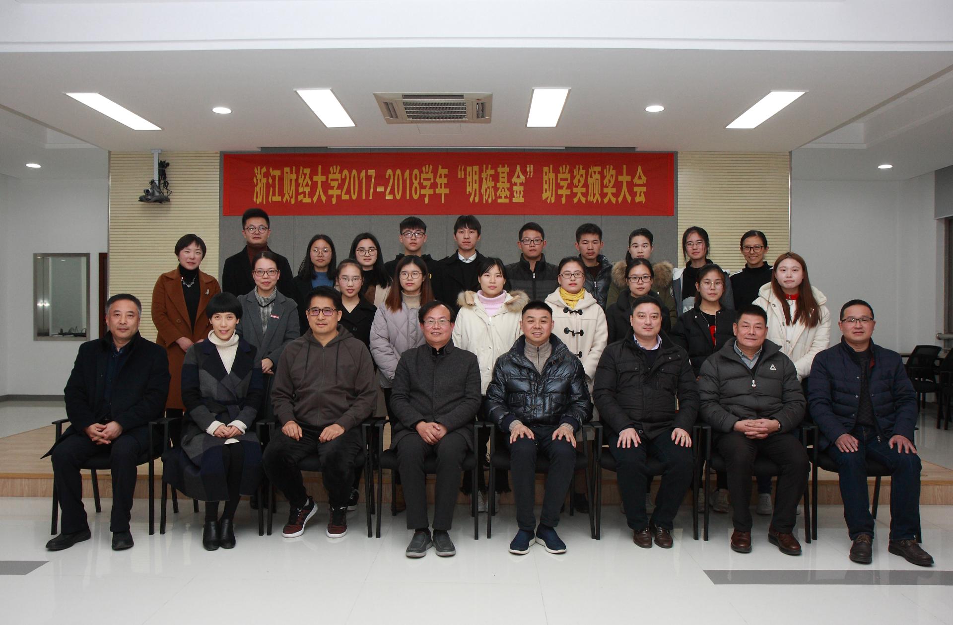 12月19日下午,2017-2018学年“明栋基金”助学奖颁奖大会首次在校友企业蓝山投资有限公司举行。蓝山投资有限公司董事长王晓明,浙江盈阳资产管理股份有限公司创始人楼栋,蓝山投资有限公司总裁王柳琳,关瑞慈善基金会执行会长吕霞,校友总会副会长兼秘书长、副校长黄建新,校友总会办公室、校教育基金办公室主任马亦群,校学生处处长范建锋,校友总会副秘书长、水果派
