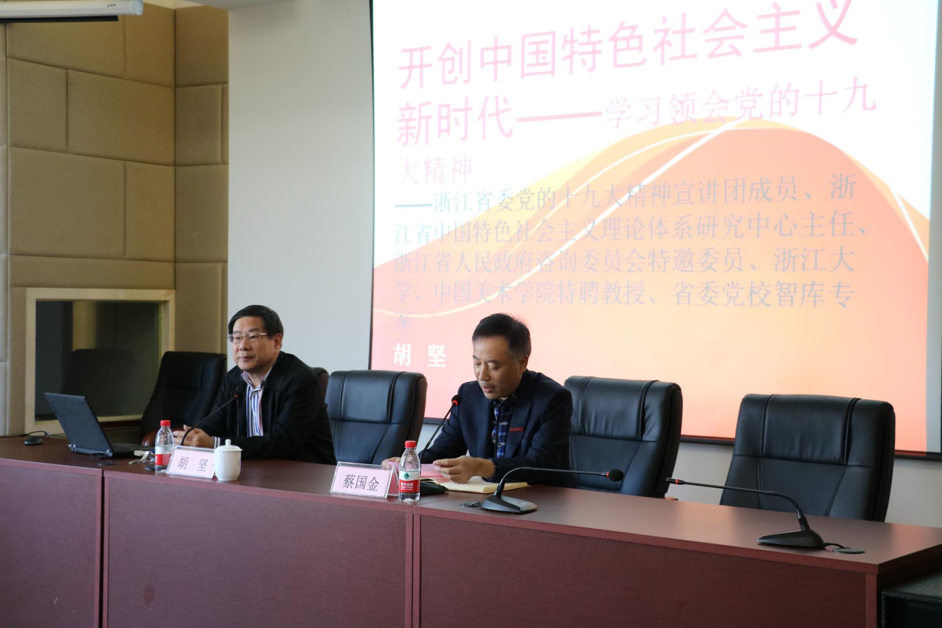 上午10点,《学习十九大精神》主题报告会在学院楼202举行。此次会议主讲嘉宾为原浙江省委宣传部常务副部长胡坚,水果派
