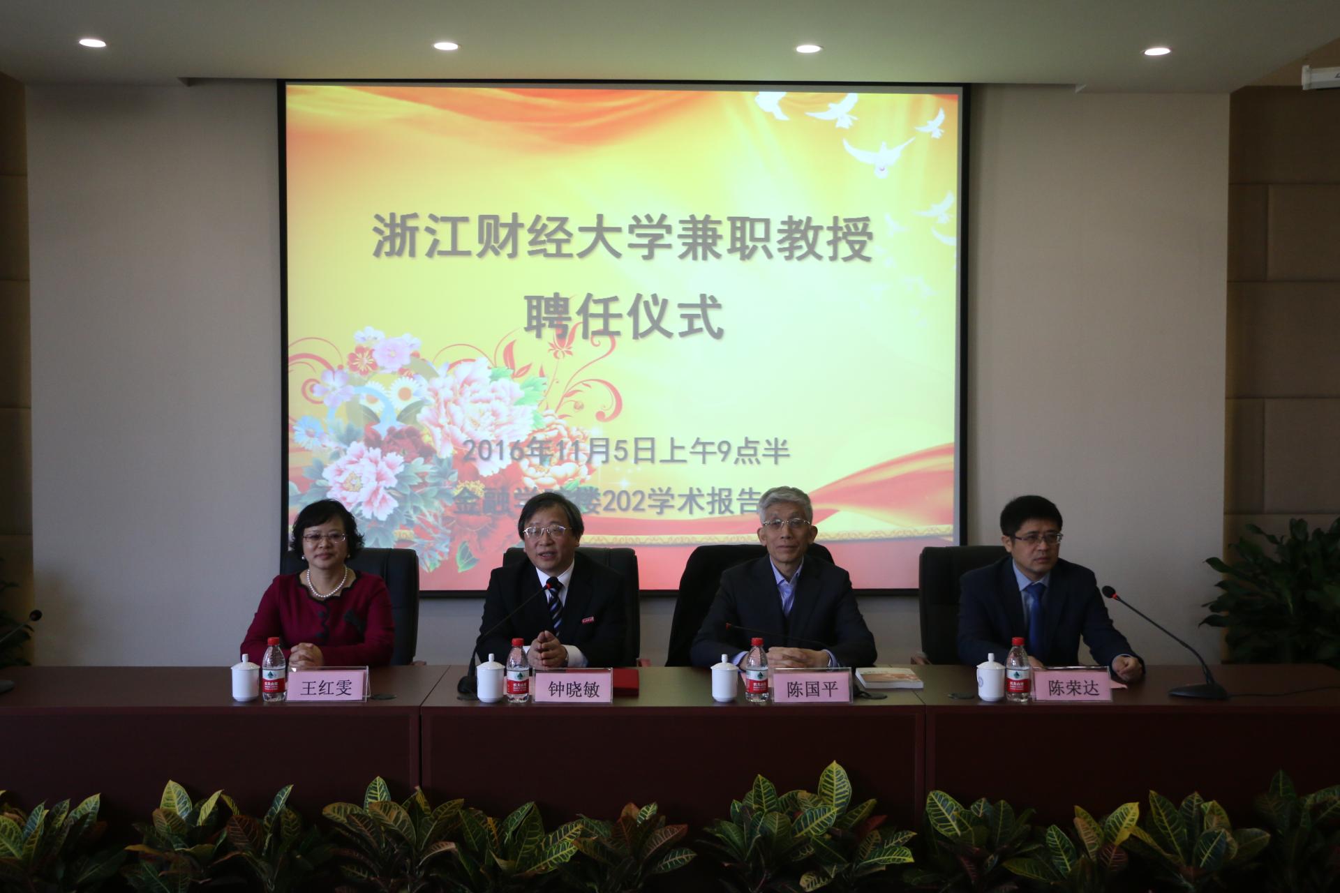 兼职教授的聘任仪式,钟晓敏校长出席并为陈国平先生和浙江省上市公司协会法定代表人王红雯颁发了水果派