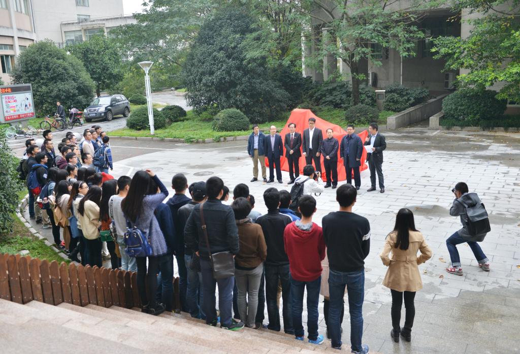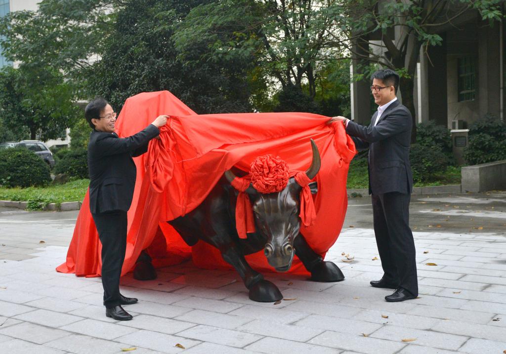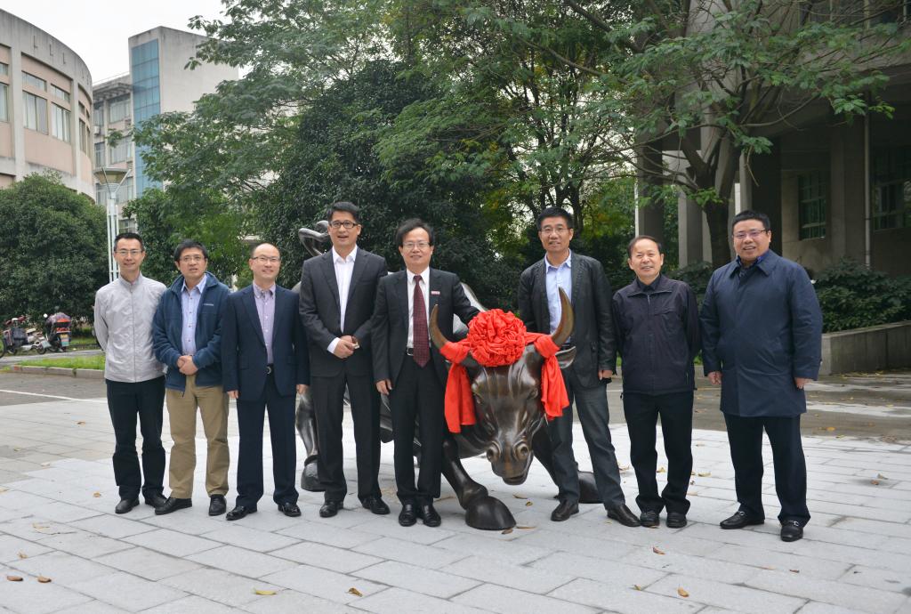 捐赠“盈阳牛”雕像的捐赠仪式在学院门口隆重举行。副校长黄建新、院长李连华、党总支书记杨鹰彪、副书记陈伟、副院长陈荣达、校友办李晓峰等领导及优秀校友楼栋先生出席了此次捐赠仪式,浙江盈阳资产管理股份有限公司部分员工和水果派