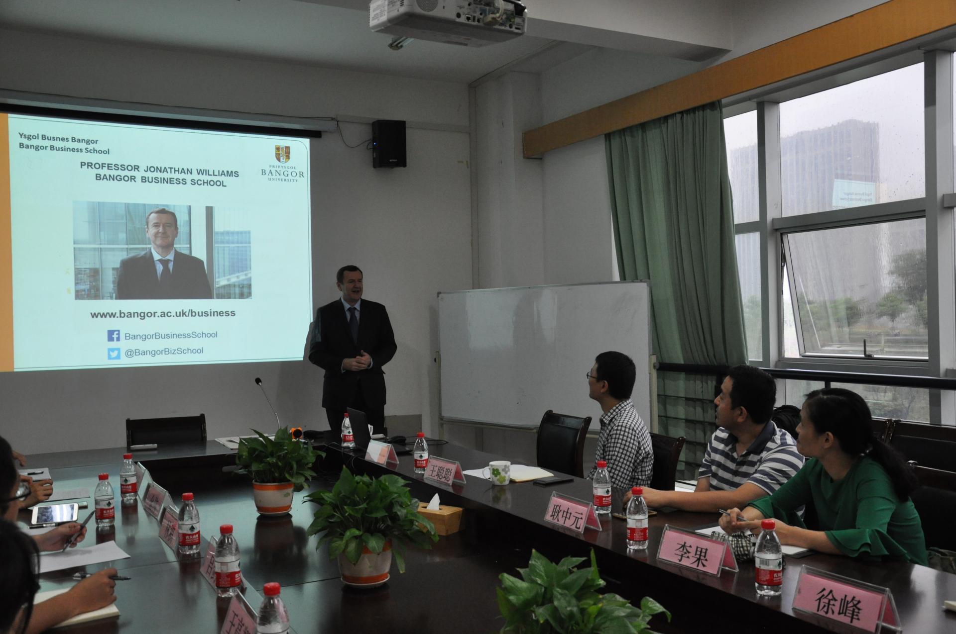 威廉姆斯教授首先对班戈大学商学院做了简短的介绍,其次围绕教学、科研及行政工作进行了详细的阐述。威廉姆斯教授指出,教学与科研是大学教师工作中不可缺少的一部分,同时提供了一些评价教学与科研绩效的标准方法。他强调了合作在科学研究中的重要性,并通过一些现实生动的例子表明他的观点。针对青年教师比较关心的如何平衡教学、科研与行政工作,他分享了一些自身的经历与看法。最后,威廉姆斯教授同与会教师进行了充分交流,与会教师反响热烈,纷纷表示获益良多,希望今后同威廉姆斯教授进一步加强交流与合作。