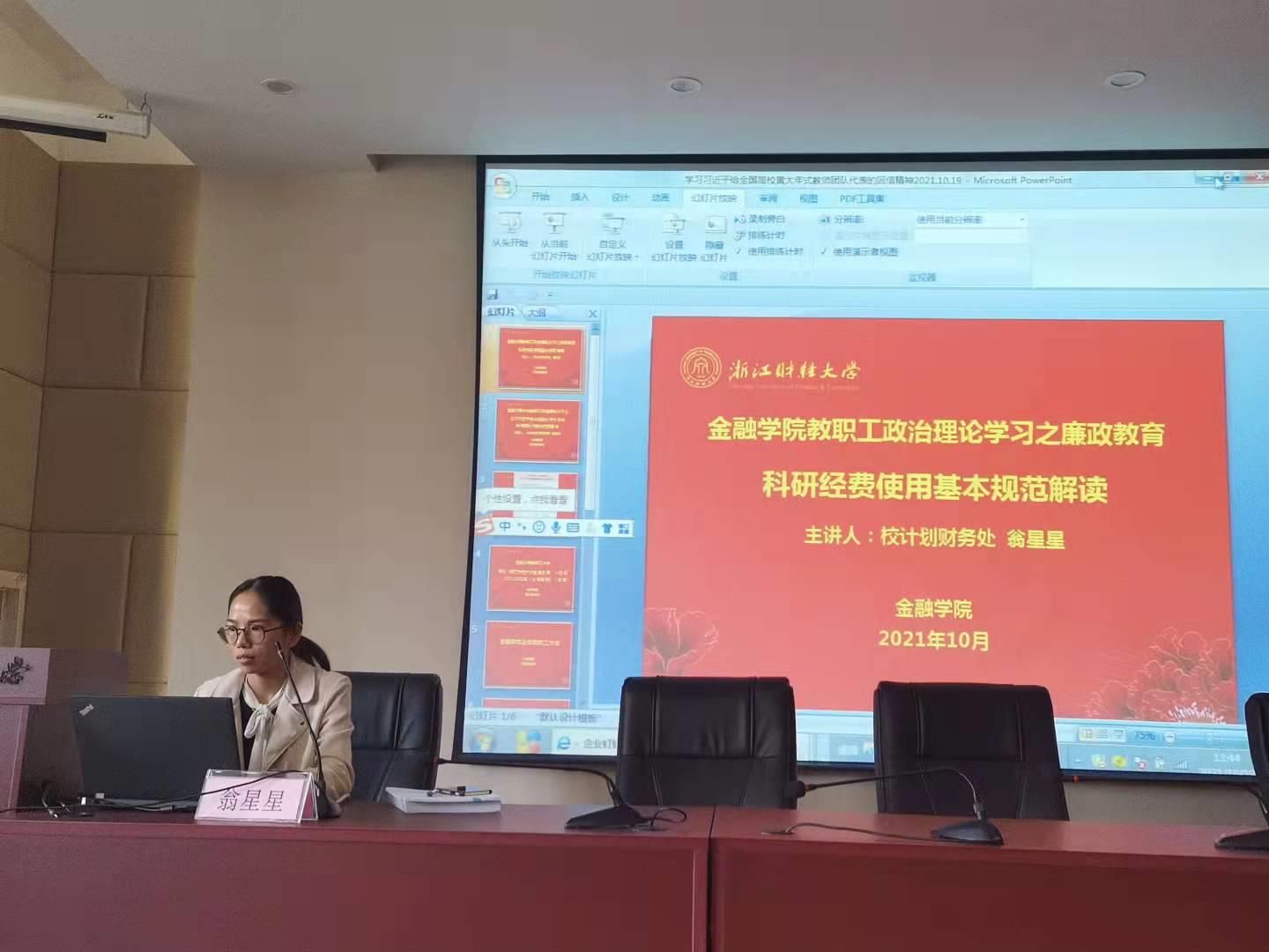 为进一步加强“清廉水果派 ”建设,落实“金鹰廉韵”清廉建设“五个一”项目活动,增强学院教师廉研意识,1019日,水果派 邀请校计划财务处业务骨干翁星星老师开展题为“科研经费使用基本规范”的廉洁教育专题讲座,学院全体教职工参加了学习