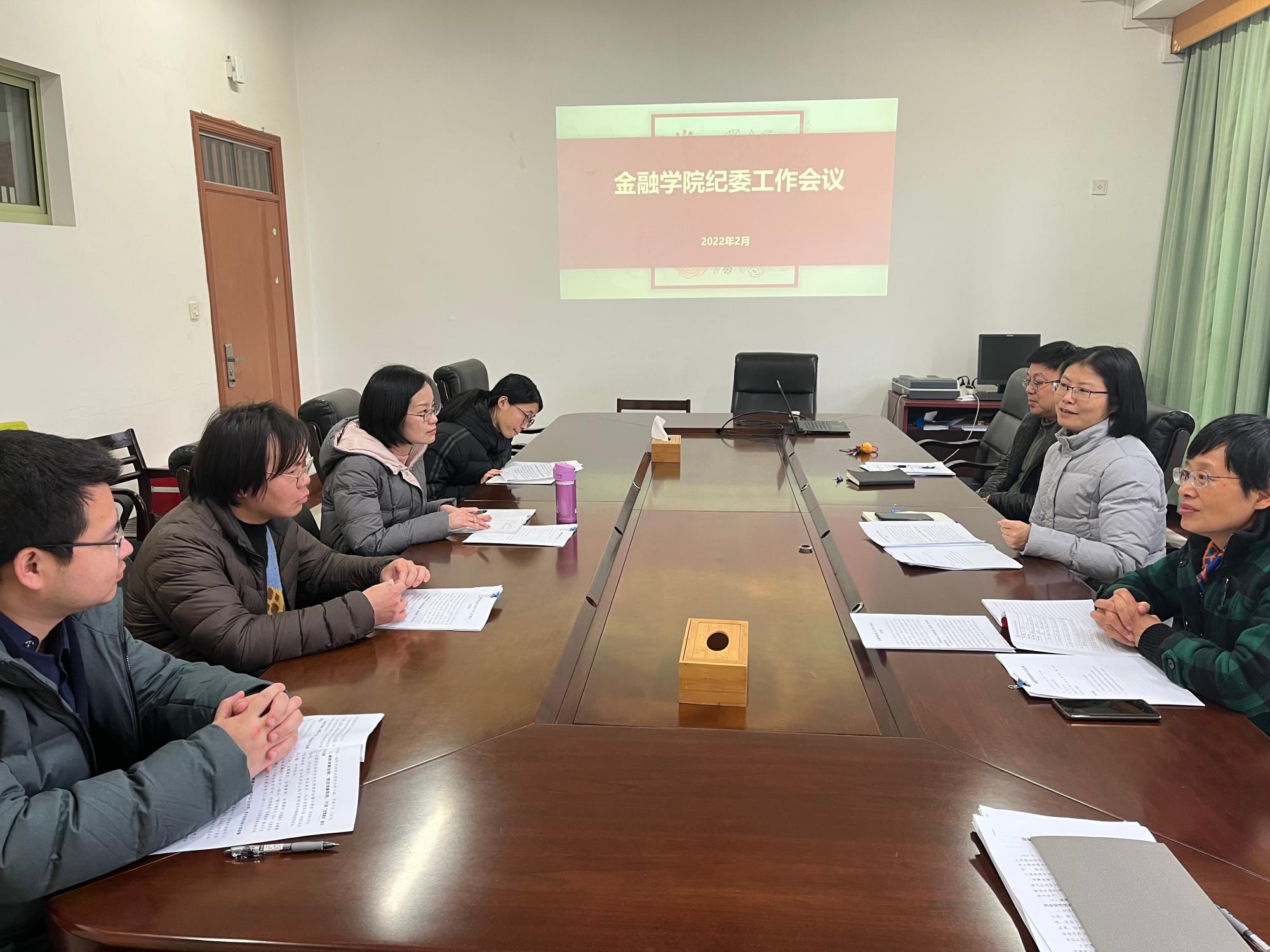 纪委在学院楼418会议室召开2022年第一次纪委会。学院全体纪委委员、特邀监察员、廉情观察员参加会议。会议由学院纪委书记谢敏主持。