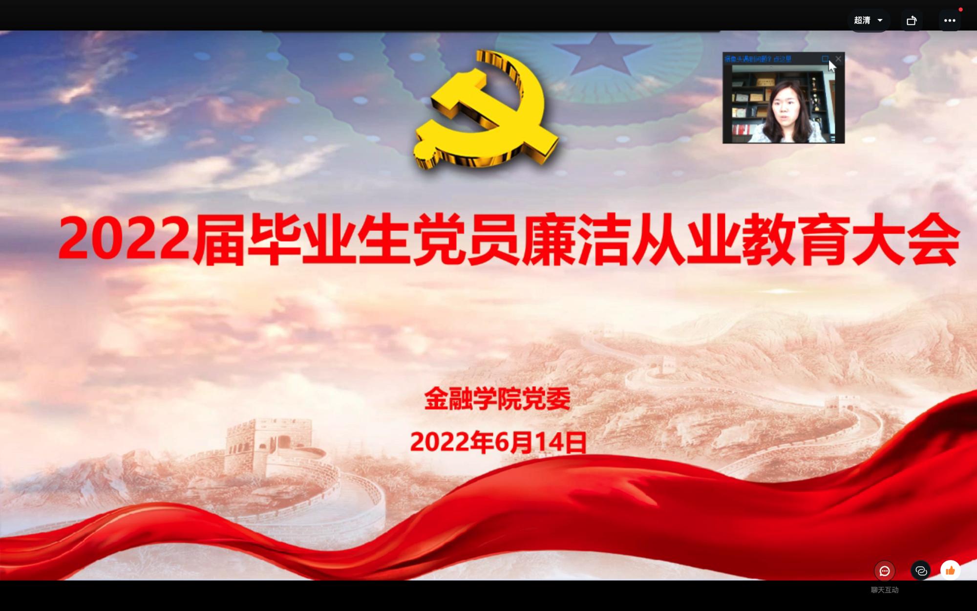 为进一步加强党性教育和廉洁自律意识,引导毕业生党员扣好廉洁从业第一粒扣子。6月14日,水果派 党委召开2022届毕业生党员廉洁从业教育线上会议,学院党委副书记、纪委书记谢敏、专职组织员翟丽媛和2022届全体毕业生党员参加了大会。会议由翟丽媛主持。