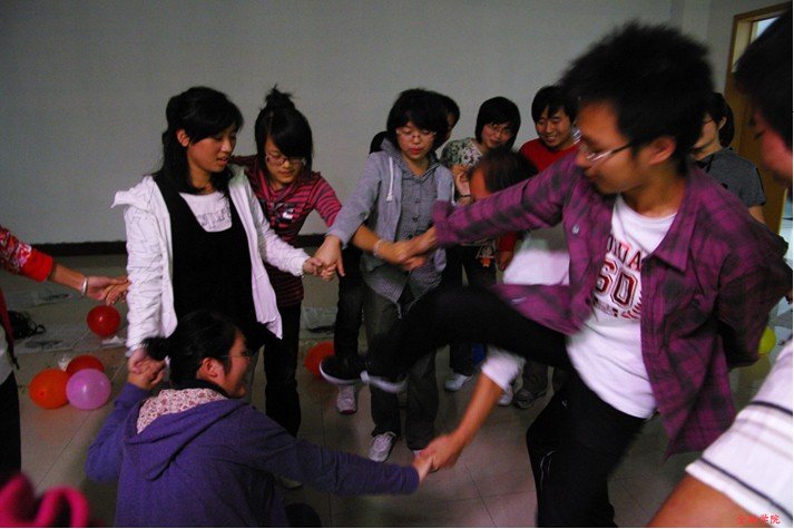 富有特色的游戏使新老生在轻松的气氛中增进了感情。接下来的新老生交流,09级新生对大学生活的困惑由老生们给他们做了一一解答。双节棍、诗朗诵,又将整个联谊会带入了高潮,最后在有趣的踩气球活动下,联谊会落下了帷幕。