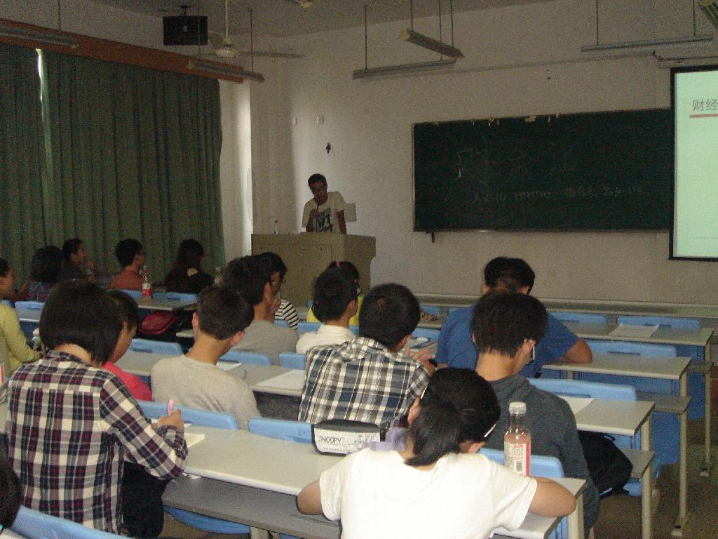 10月10日下午14时,水果派 金融工程学会举办的第一期“财金汇”讲座在学院楼204正式开讲。虽然是金融工程学会第一次举办这一类型的讲座,但是反响却很热烈——不仅绝大多数金融工程专业的学生赶来参加讲座,并有许多其他学院的同学慕名而来。现场的气氛因为这些与会同学的到来变得活跃起来。