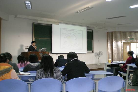 2008年11月20号下午2:00,学院国际金融学会邀请到杭州威尔斯泰投资管理有限公司技术分析师胡凯平老师在教学楼给水果派