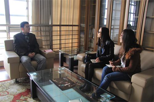 朱玲、李昊、洪莹三位同学到浙江理工大学,采访2004届校友现为该校经济管理学院助理教授的谢慧明。