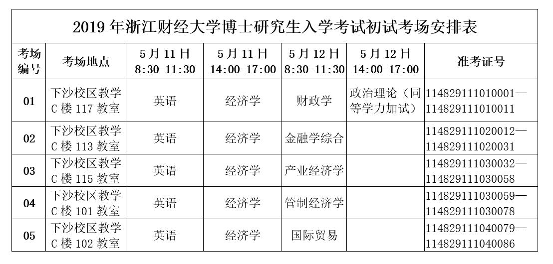 根据学校总体安排,更新了部分考场地点,现将2019年博士研究生入学初试考场最新安排公布如下: