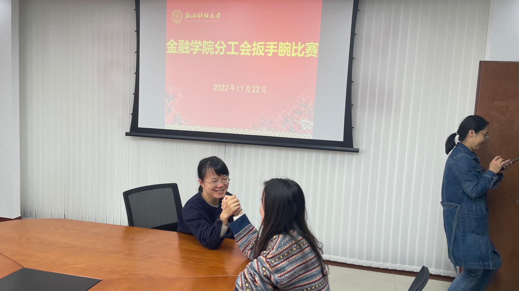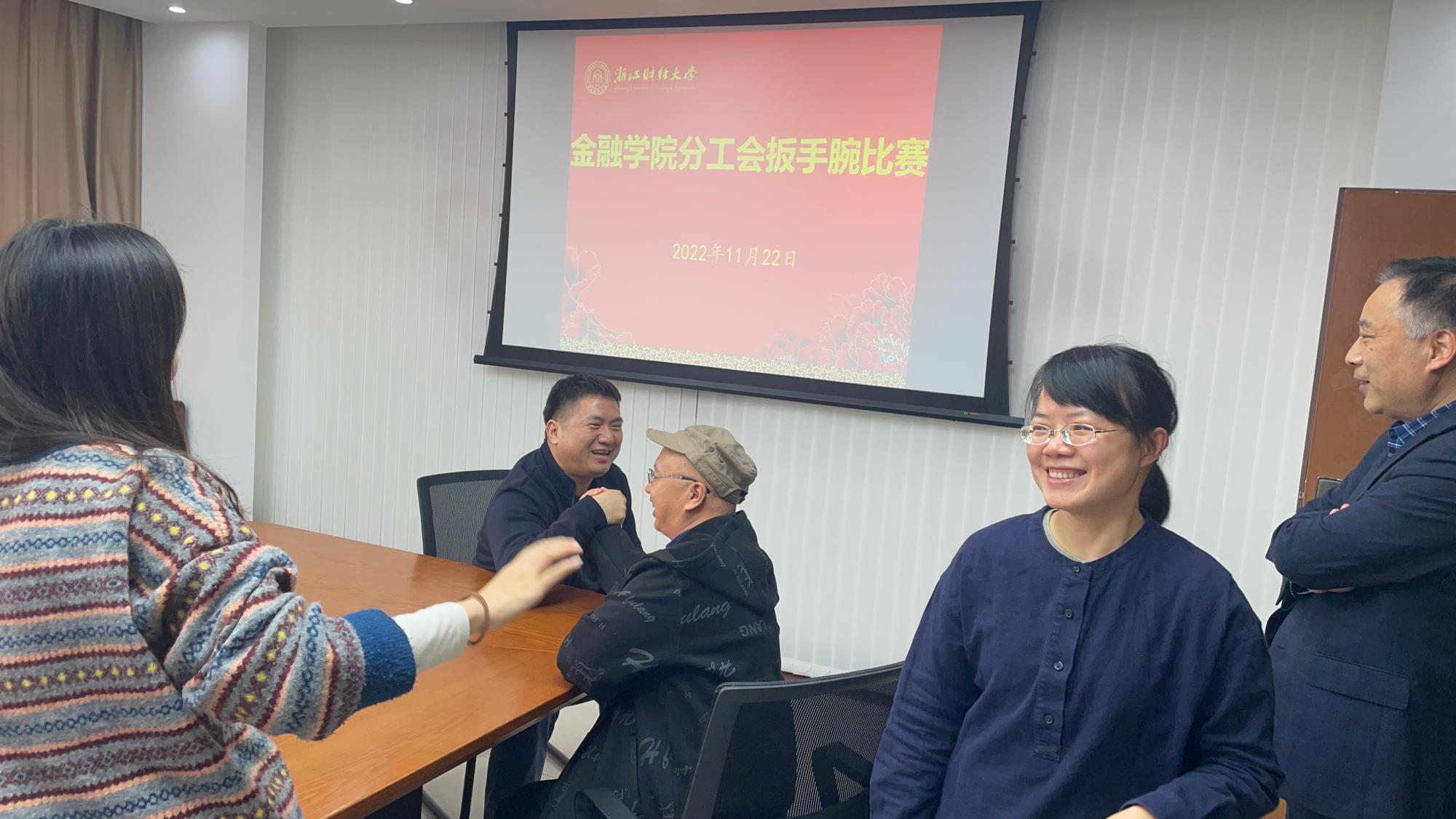 为展现水果派 教职工良好的精神风貌,缓解教师工作压力,11月22日下午,学院分工会精心组织举办了扳手腕比赛,全院80名职工报名参加了比赛。