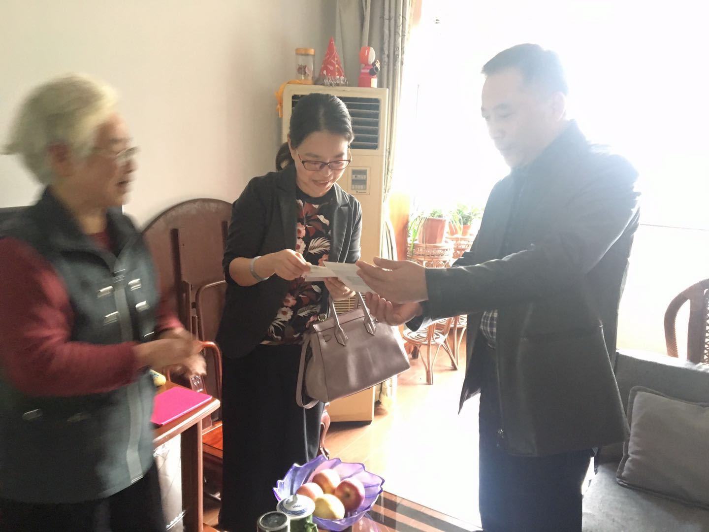 分工会主席叶秀老师一行,先后走访慰问居住在杭州城区的几位退休老教师。