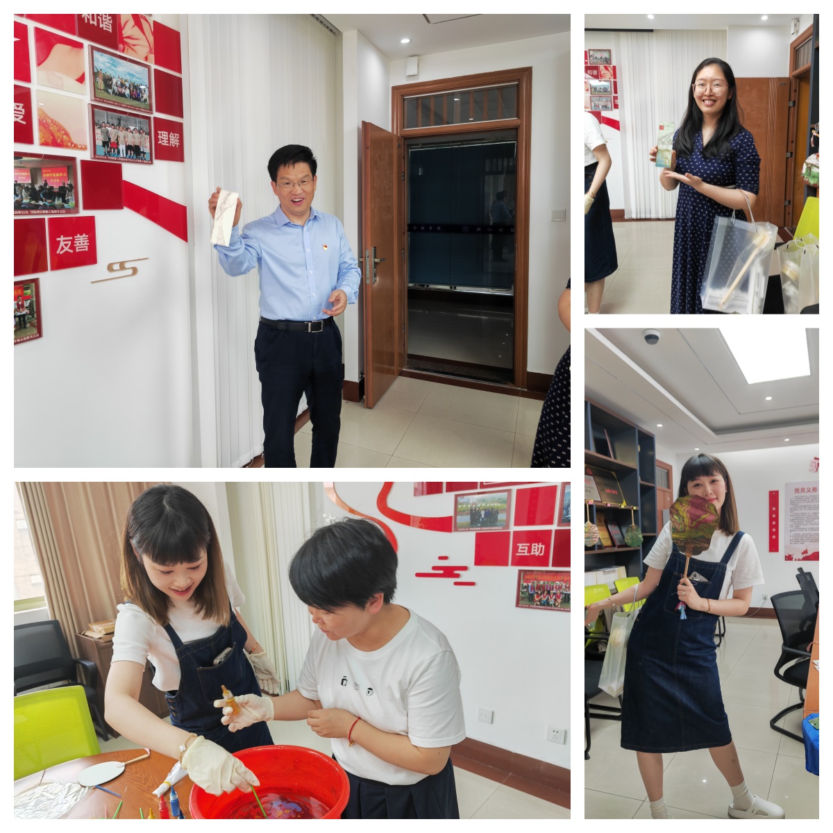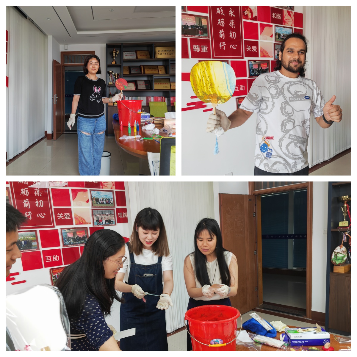 活动中,各位老师积极参与,调配出独属于自身的色彩,将扇子或是书签沉入水中,漆油在上面荡漾出独一无二的形状。本次活动既丰富了水果派 教职工的工作生活,也传递了传统非遗技艺。