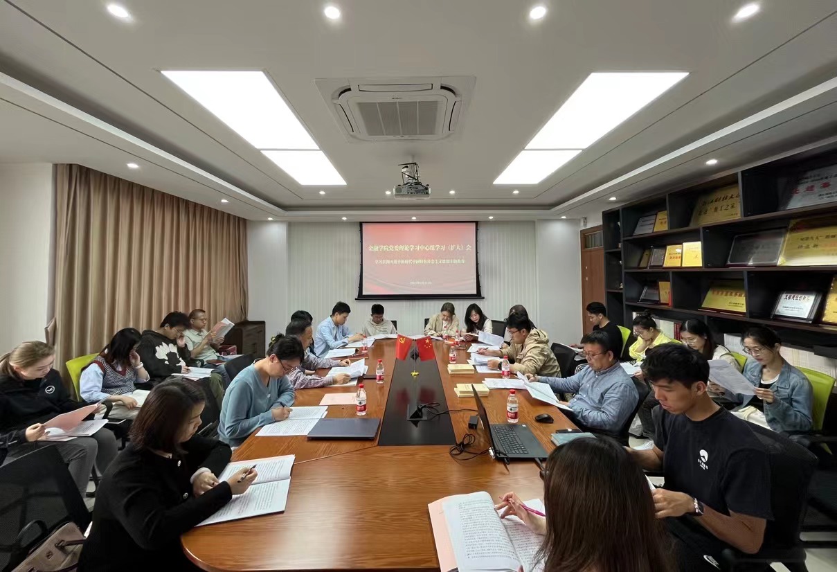 党委理论学习中心组召开学习(扩大)会,专题学习贯彻习近平新时代中国特色社会主义思想主题教育相关精神。学院党委理论中心组成员、各党支部书记、党建指导老师参加学习会,本次会议由党委书记蔡国金主持。