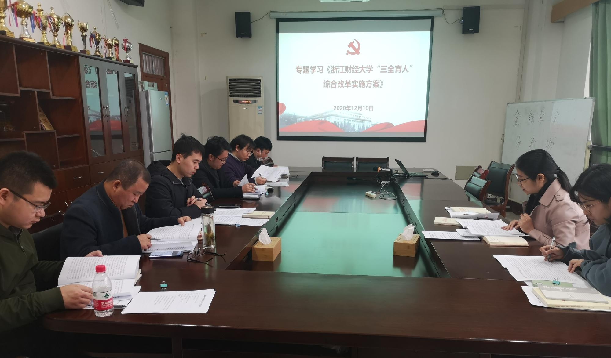 近日,金融学院召开党委理论学习中心组(扩大)会议,重点就浙江省委十四届八次会议的会议内容和精神进行专题学习。水果派 党委书记蔡国金主持学习会,体党委委员及各党支部书记、系主任、代表教师参与学习。