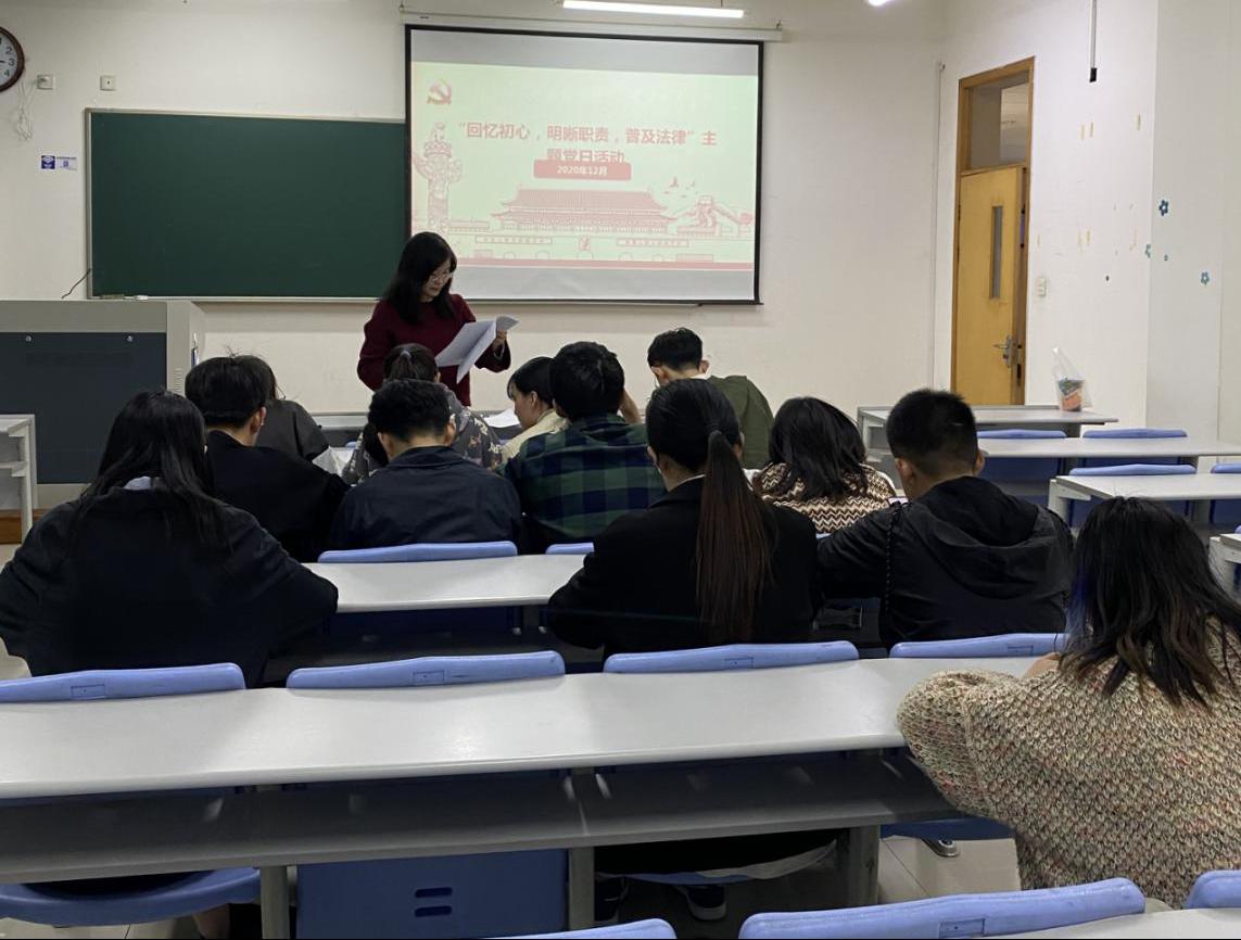本科生第四党支部于2020年12月8日下午在学院楼101教室举办了以“回忆初心、明晰职责、普及法律”为主题的党日活动。