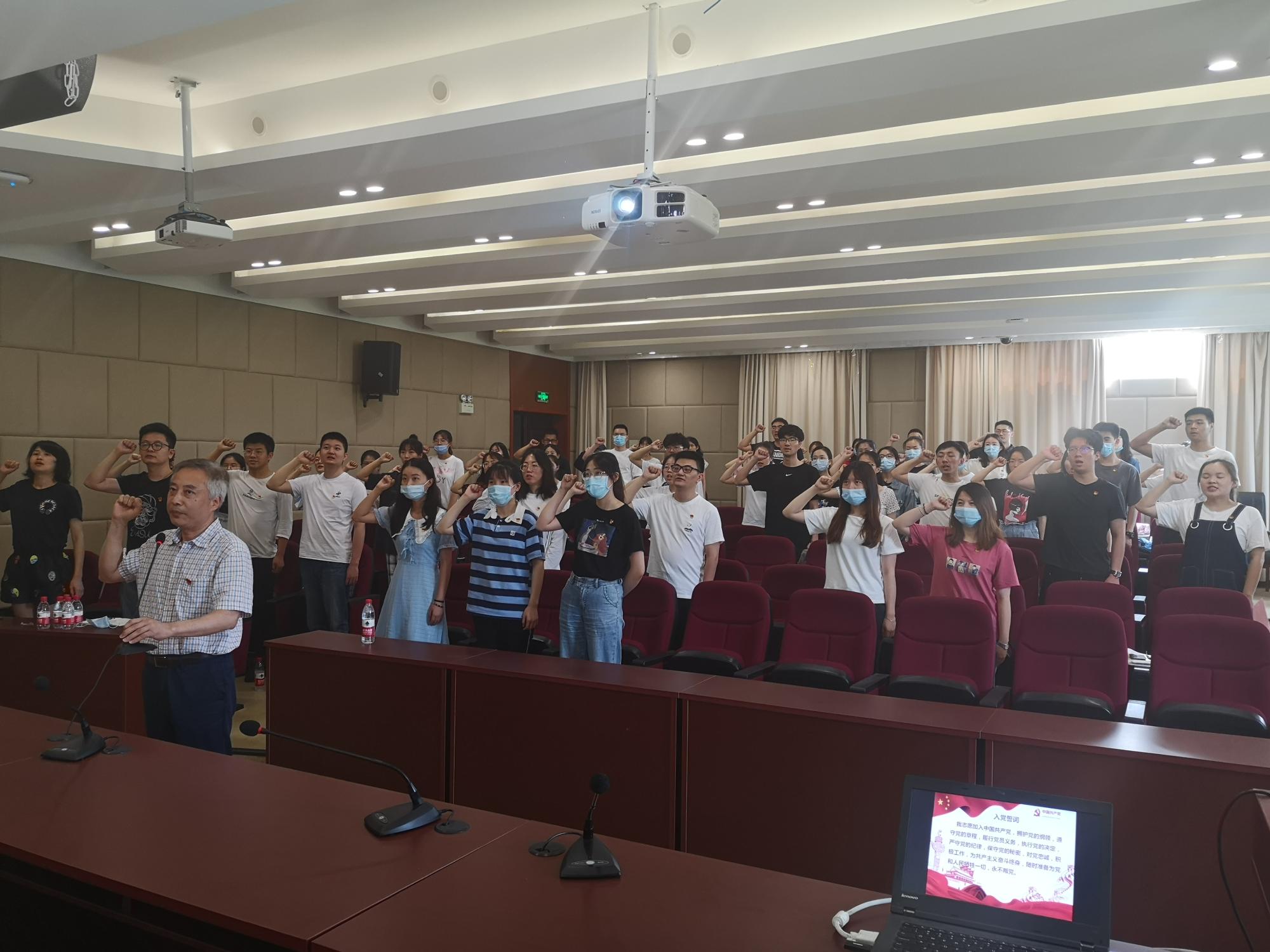 楼202报告厅隆重举行。学院党委书记蔡国金、专职组织员翟丽媛、各学生党支部书记、支委以及全体新发展党员参加了本次活动。