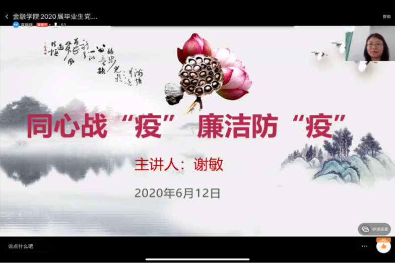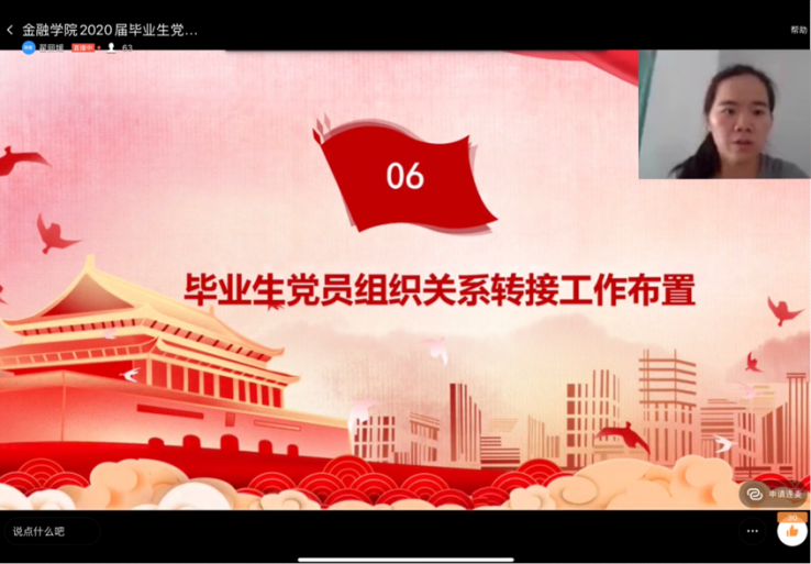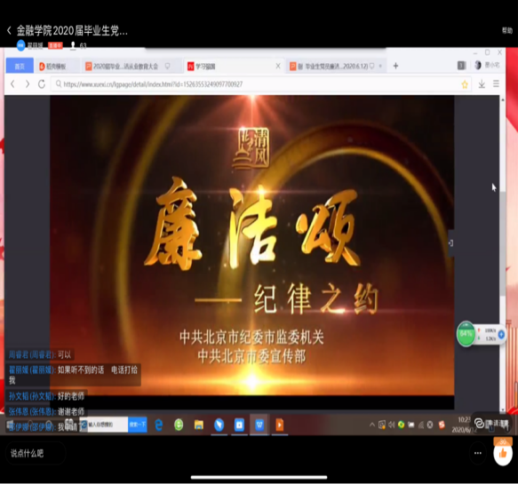 党委召开2020届毕业生党员廉洁从业教育线上会议,学院党委副书记兼纪委书记谢敏、专职组织员翟丽媛、各学生党支部书记和2020届全体毕业生党员参加了大会。会议由翟丽媛主持。