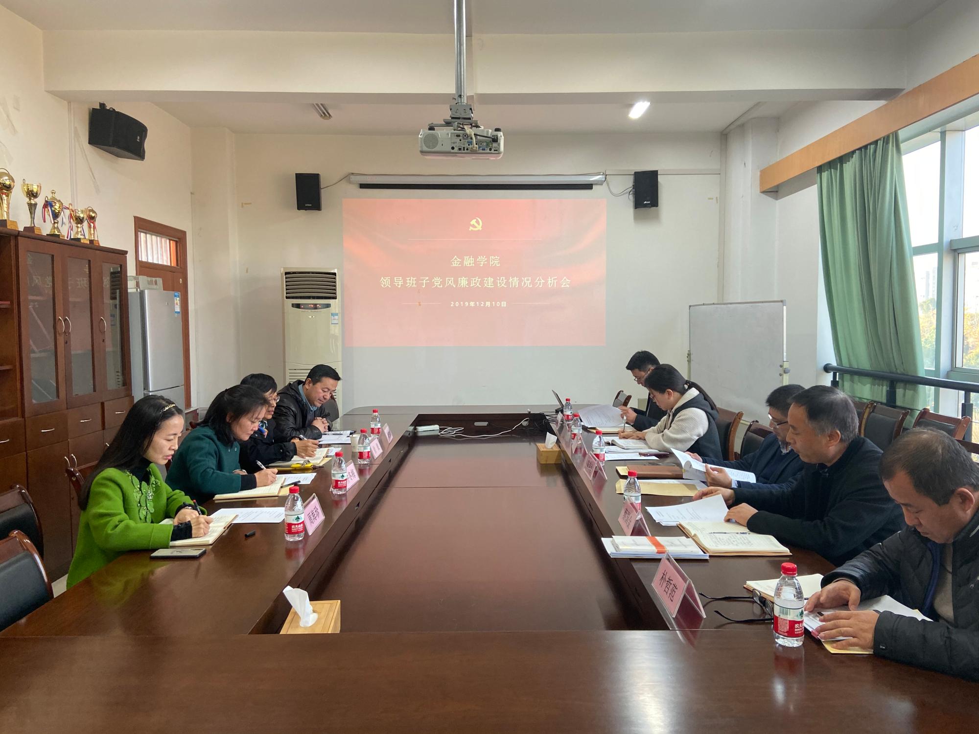2019年度领导班子党风廉政建设情况分析会在学院楼422会议室举行。学院党政领导班子全体成员,学院党委委员,学院纪委委员、系主任代表参加了本次会议。会议由院党委书记蔡国金主持。