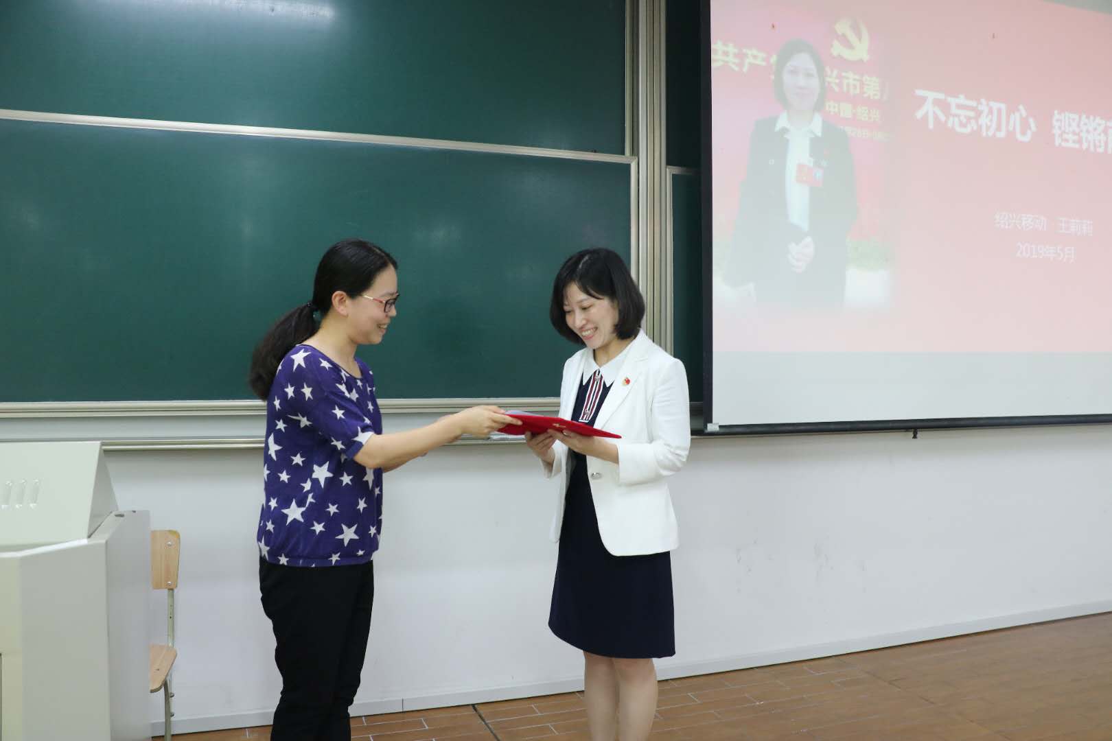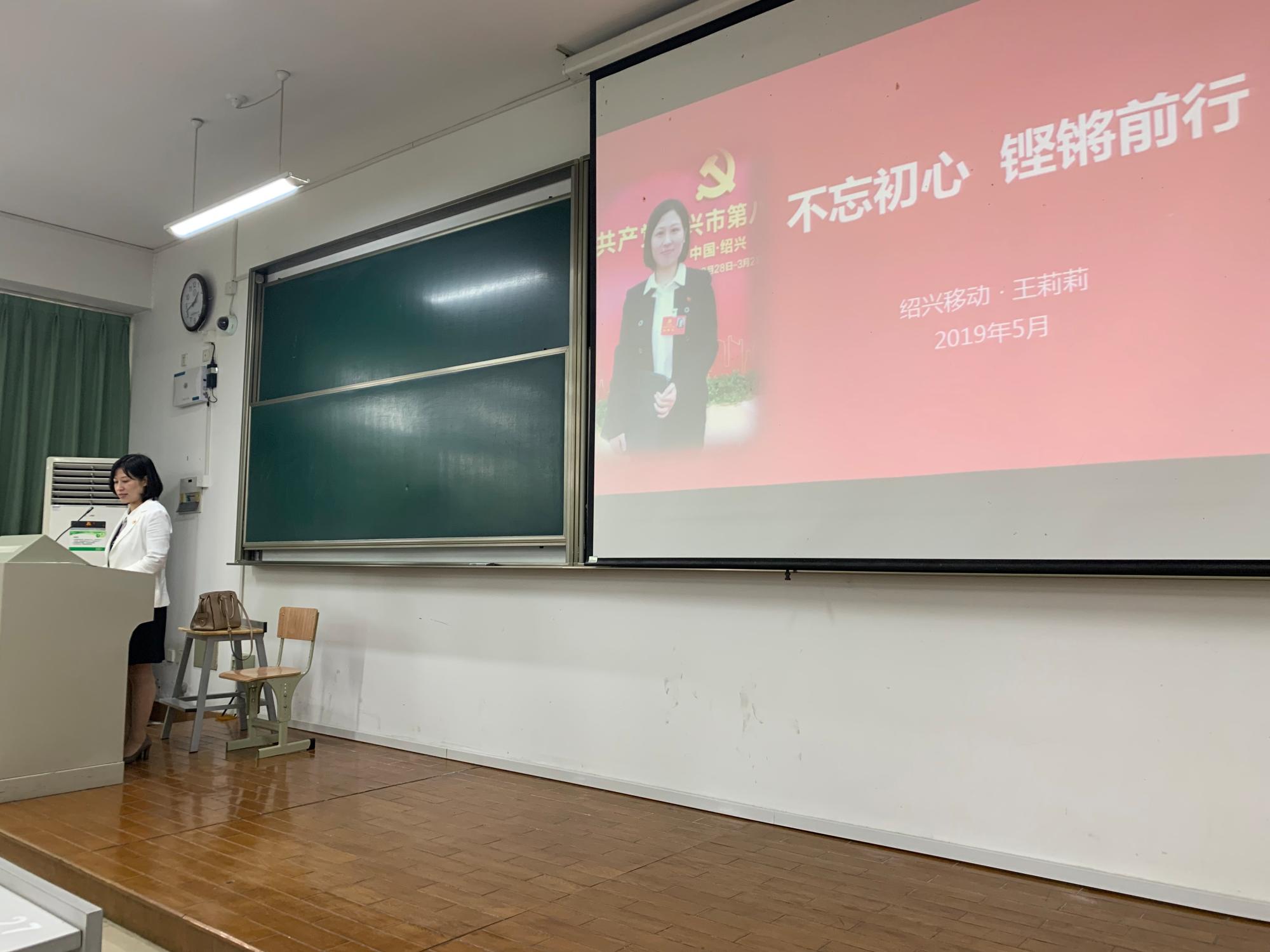 5月18日下午,水果派 2004届金融学优秀校友、现任中国移动绍兴分公司政企部重要客户中心主任绍兴王莉莉为学院入党积极分子上了一堂题为“不忘初心,铿锵前行”的生动党课。