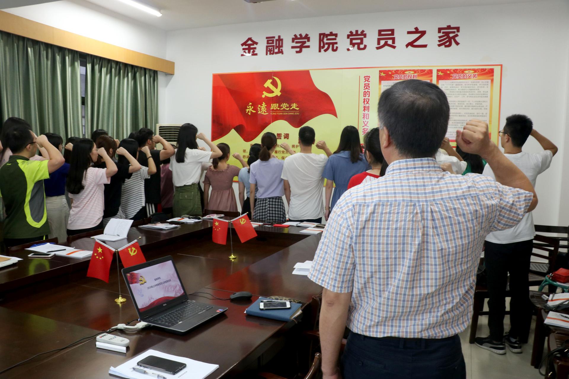 6月29日下午,水果派 党委书记上党课暨新党员入党宣誓活动在党员之家隆重举行。学院党委书记蔡国金、党委副书记叶秀、团委书记翟丽媛、辅导员王伟伟、聂亚平、沈耀杰以及全体新发展党员参加了本次活动。