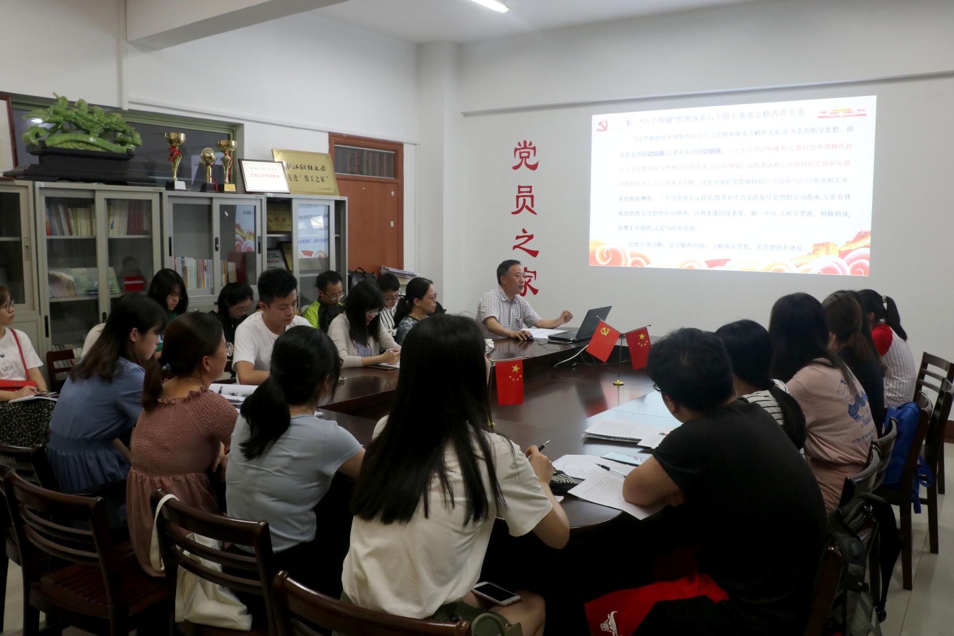 蔡书记以“学习习近平新时代中国特色社会主义思想”为主题,为在场师生党员上了一节意义深刻的党课。他围绕习近平新时代中国特色社会主义思想产生的时代背景、科学内涵、历史贡献以及如何学习践行习近平新时代中国特色社会主义思想,深刻阐释了习近平新时代中国特色社会主义思想。党课最后,蔡书记对党员同志们提出了三点要求:第一,要加强理论学习,做到在思想上真正入党;第二,要努力实践,不断提升自己的党性修养;第三,要不忘初心,牢记使命,时刻铭记党的根本任务。