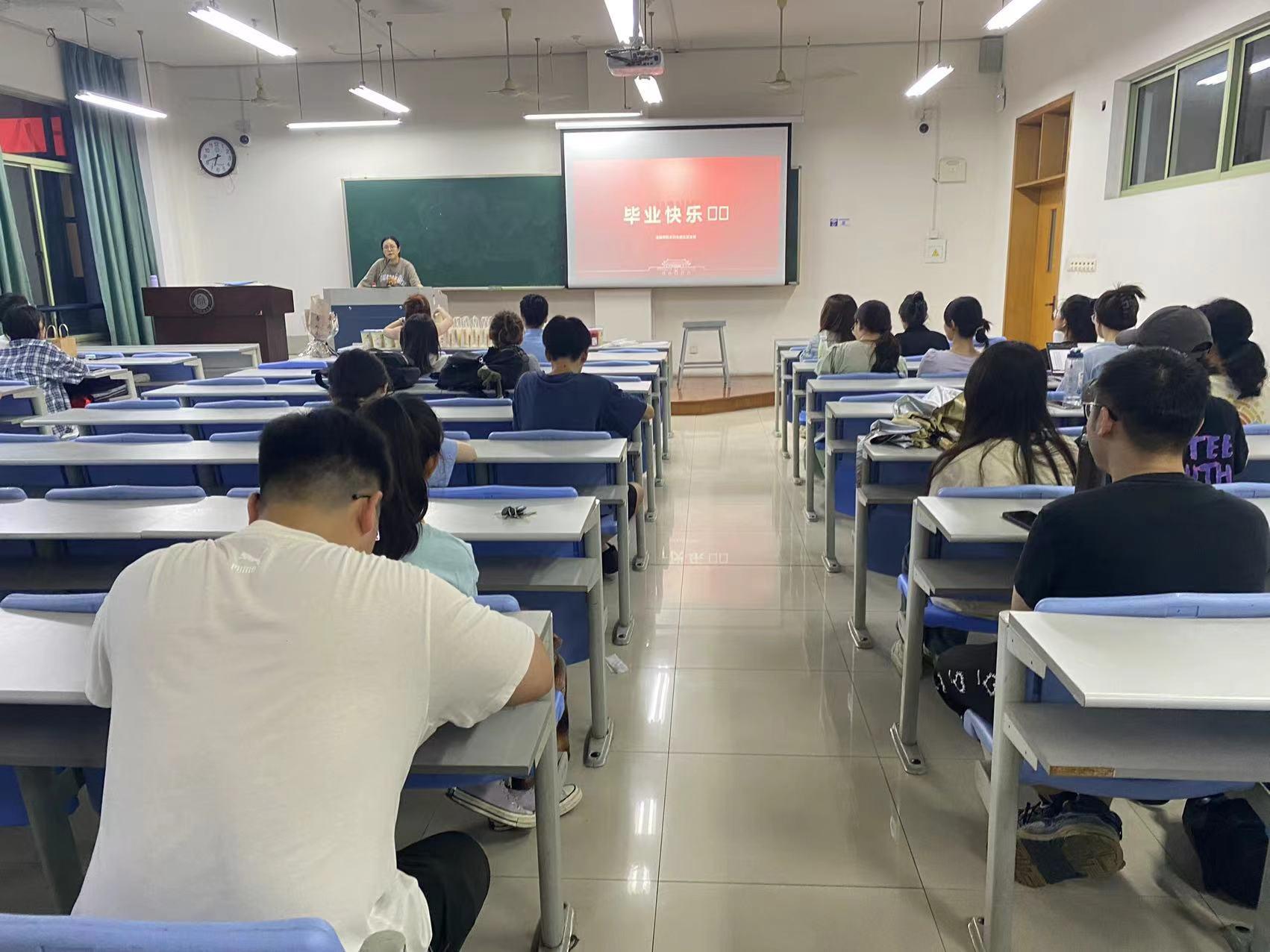 本科生第五党支部在学院楼104教室举行“不忘初心,追光前行”毕业生党员欢送会,活动由支部书记沈晓云主持。