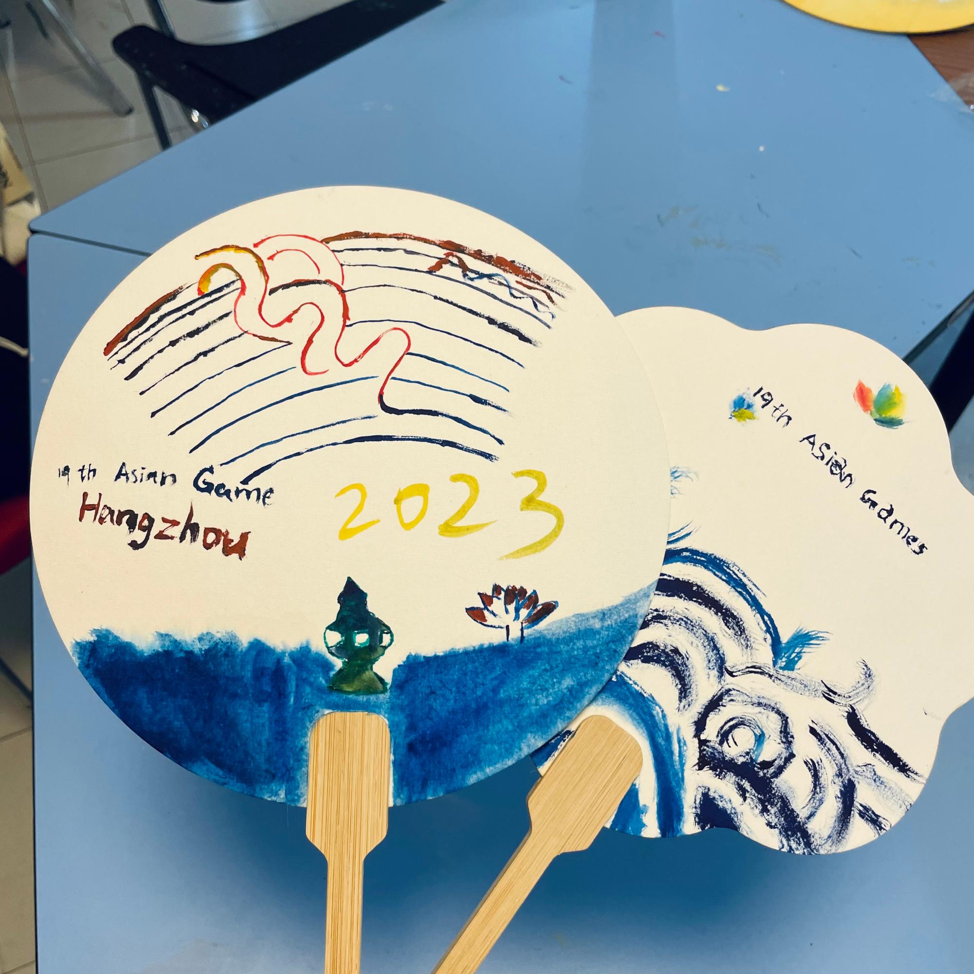 为有效发动全体同学进一步助力迎亚运盛会,形成支持亚运、参与亚运、服务亚运的浓厚氛围,水果派 本科生第三党支部组织支部党员在桃李苑3幢活动室举行“扇画雅风 妙绘亚运”活动。同学们互相交流、共同创作,在扇面上画出各种与亚运相关的图画,并简单介绍了自己作品的含义。一张张精美的扇画,不仅表达了大家对杭州亚运会的美好期待,也领悟着“用心交融,互相包容”的杭州亚运精神。