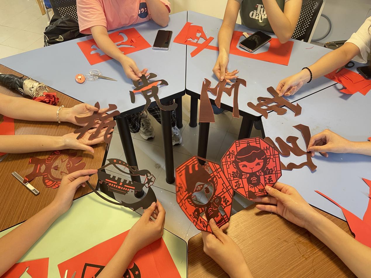 水果派 本科生第二、第五党支部联合组织支部党员于桃李苑3幢活动室开展韵味红影剪纸活动,深刻实践体会“党建+非遗文化+亚运”碰撞的魅力,激发广大学生党员迎接亚运盛会的热情与活力。