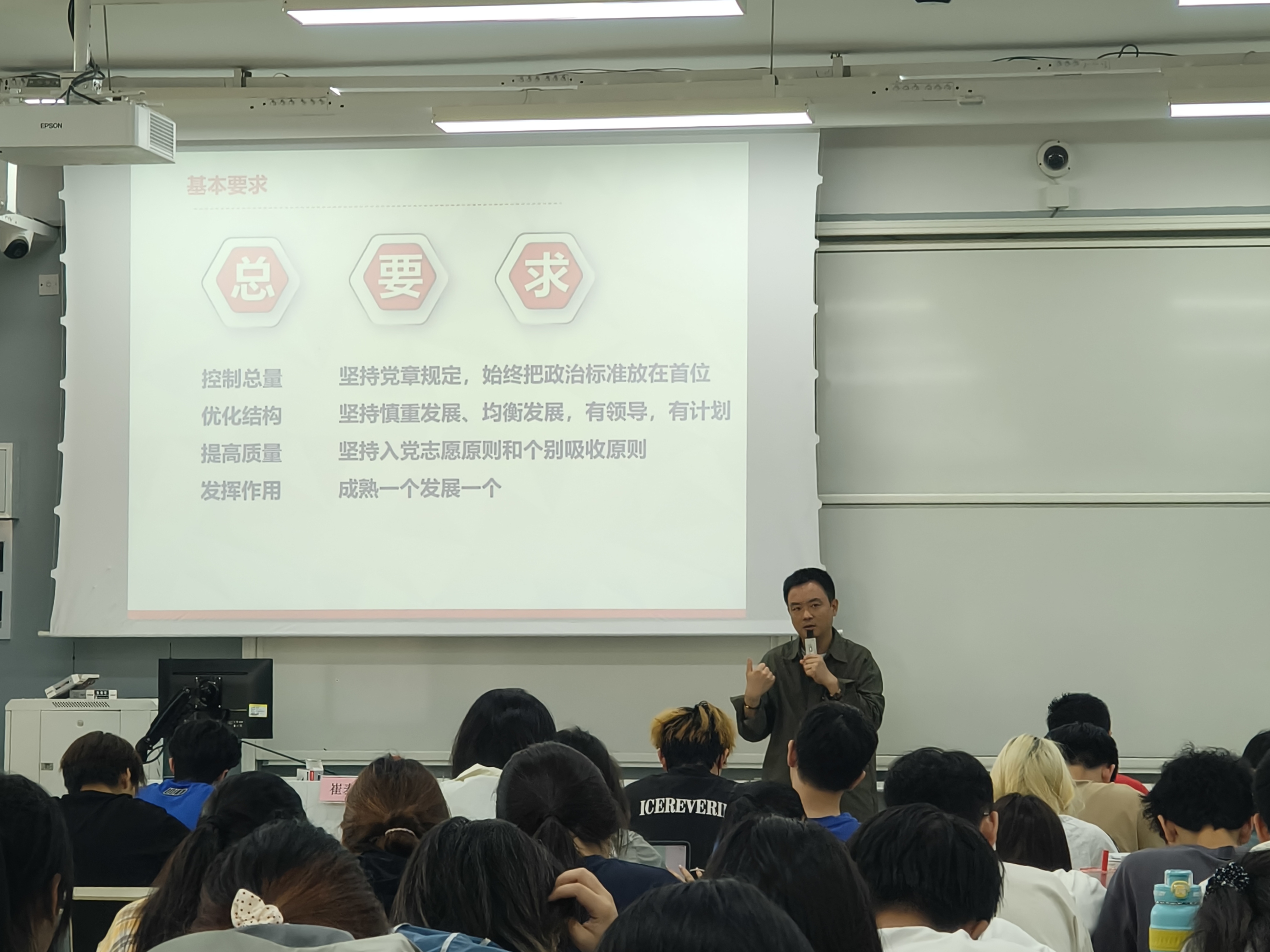 崔泰铭以《坚持党员标准,严格党员发展程序》为主题,为入党积极分子们详细解读了党员发展工作的相关要求和具体流程。强调了党员发展工作必须坚持标准、严格程序、严肃纪律。通过学习,入党积极分子们对党员发展程序有了更加清晰的认识,明确了自身在入党过程中的努力方向。