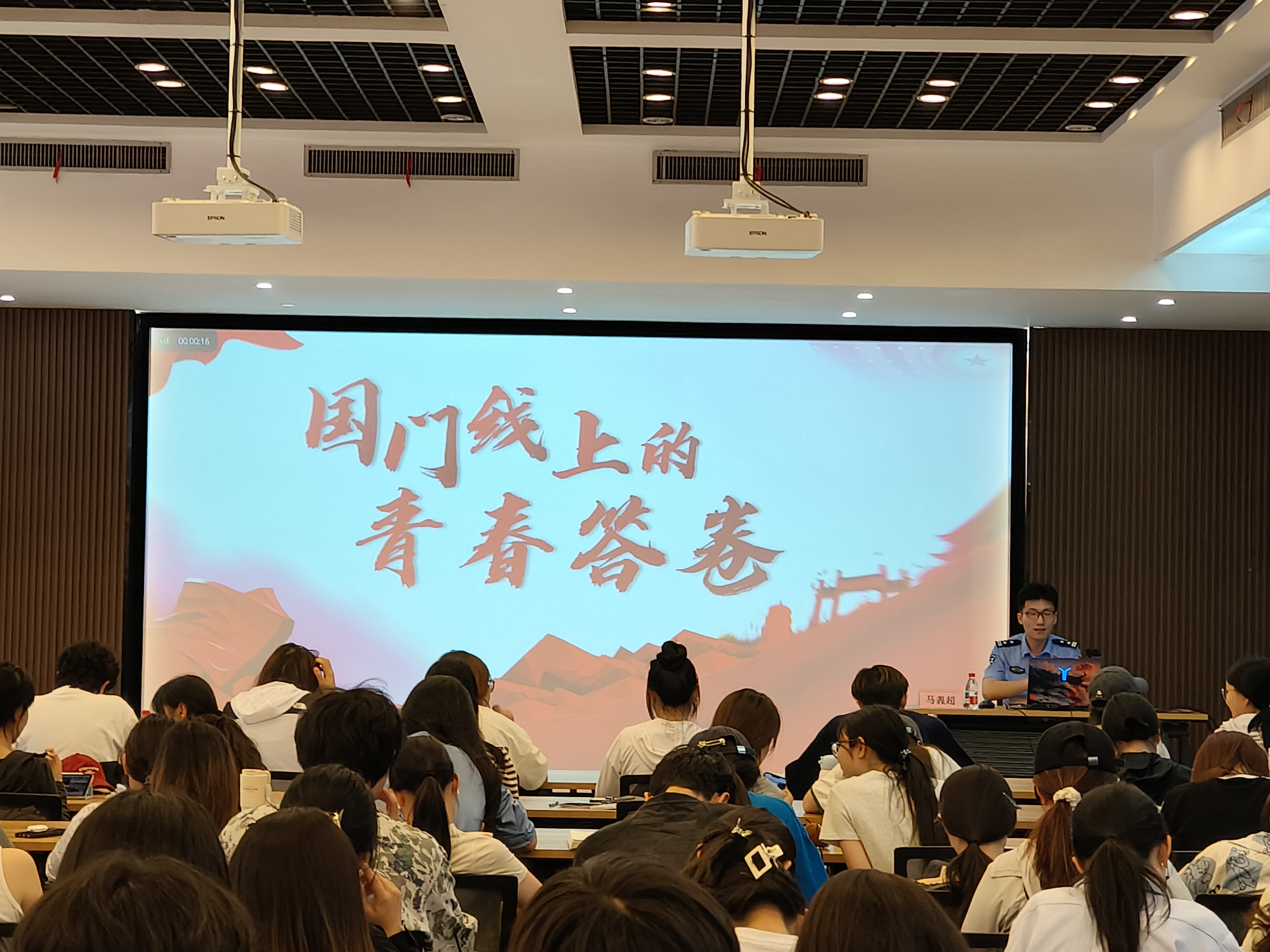 马義超以《国门线上的青春答卷》为主题,以习近平总书记的“平凡岗位上的每一次坚守,都是对初心的叩问”为切入口,从云端上的雪莲花、界河畔的生命考场、国门前的像素战争三个故事来提问并解答青年一代该如何在国门线上书写让人民满意的时代答卷。他结合自身的亲身经历,分享了自己在国门岗位上的成长历程与心路感悟,为我们树立了学习的榜样,激励着在场的每一位入党积极分子,要以坚定的信念、无畏的勇气和不懈的奋斗,在各自的岗位上发光发热,为党和人民的事业贡献自己的力量。