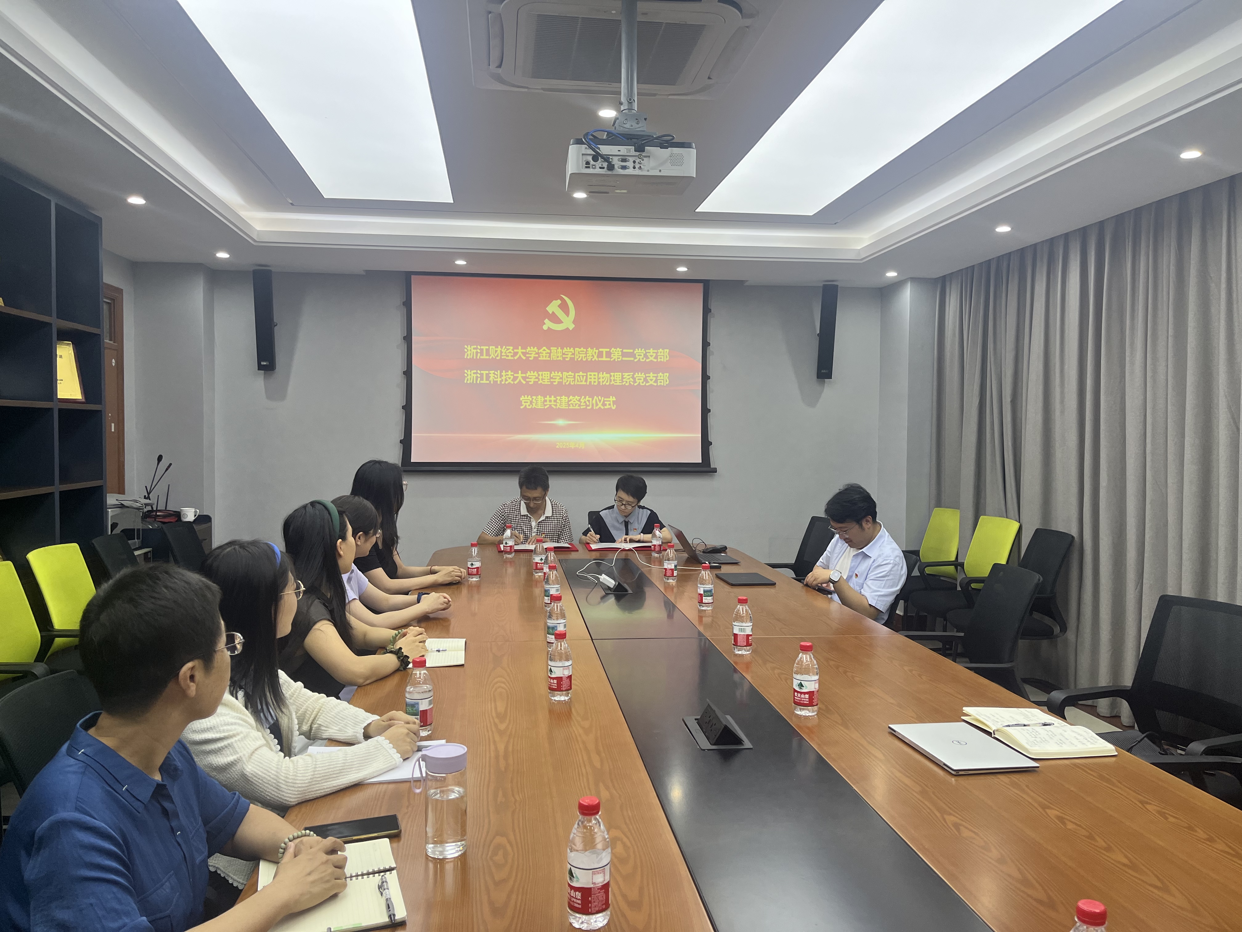 教工第二党支部与浙江科技大学理学院应用物理系党支部党建共建签约仪式在学院楼422会议室进行。值得一提的是,浙江科技大学理学院应用物理系党支部作为全国党建工作样板支部,此次共建为水果派