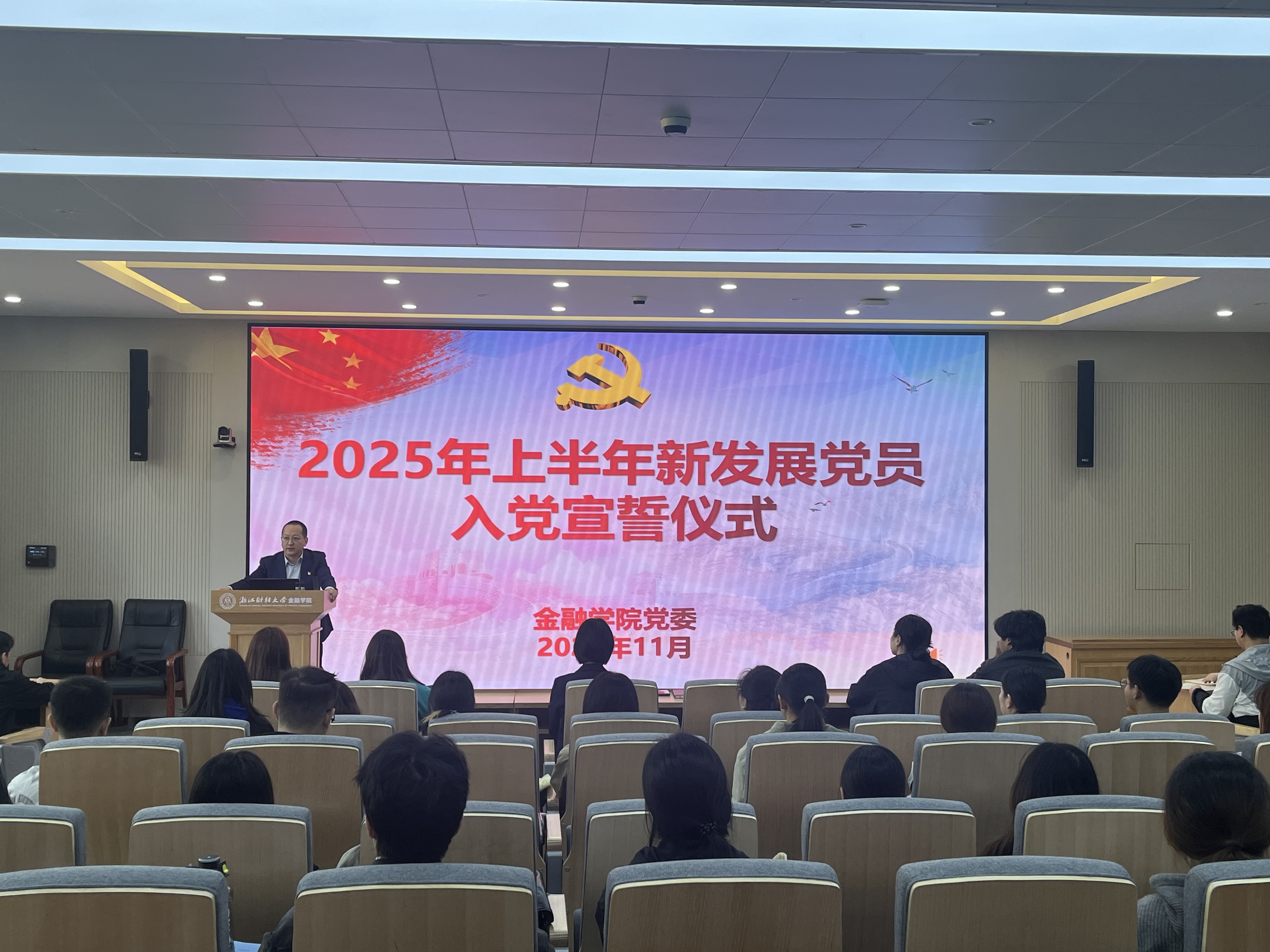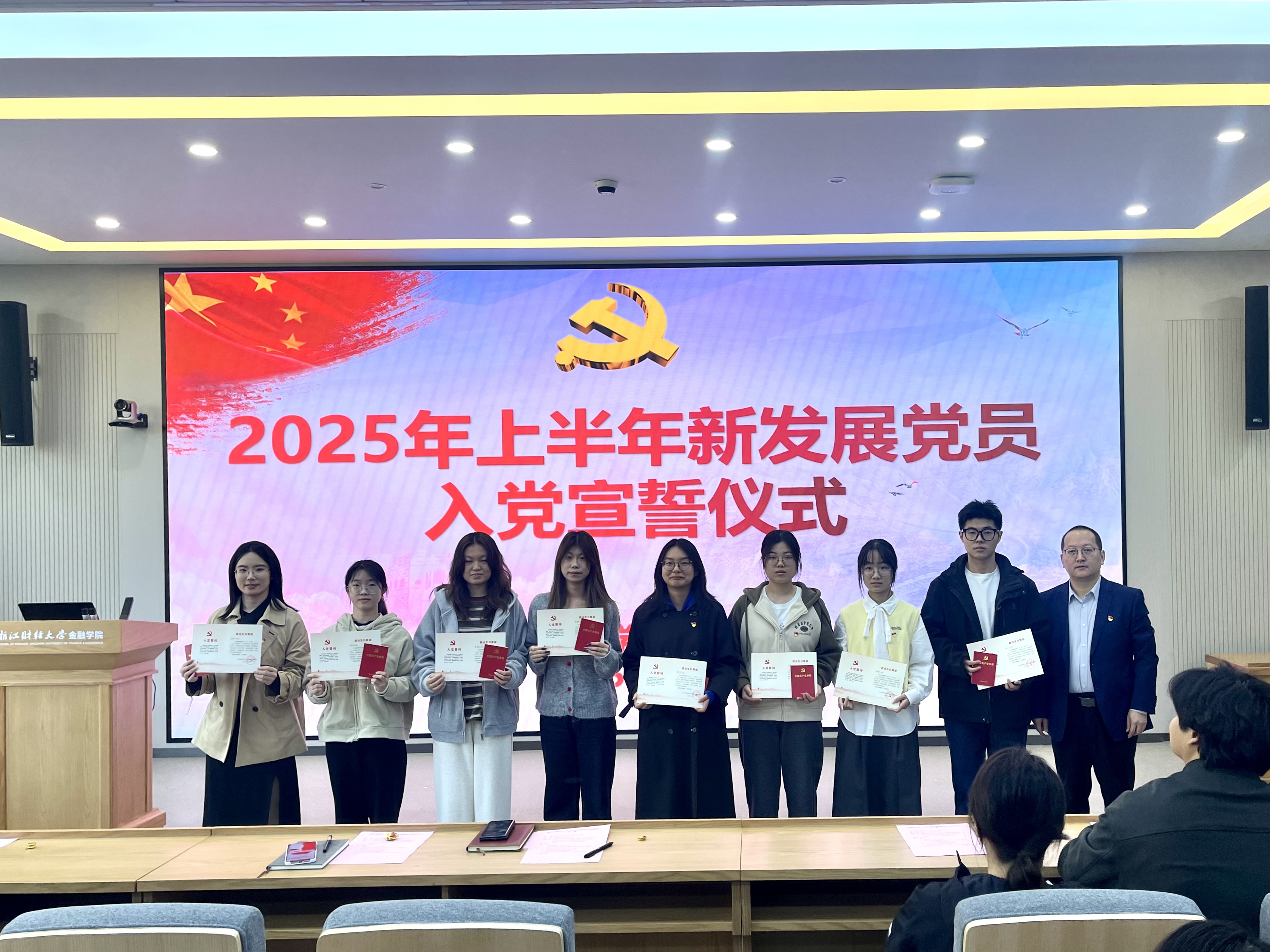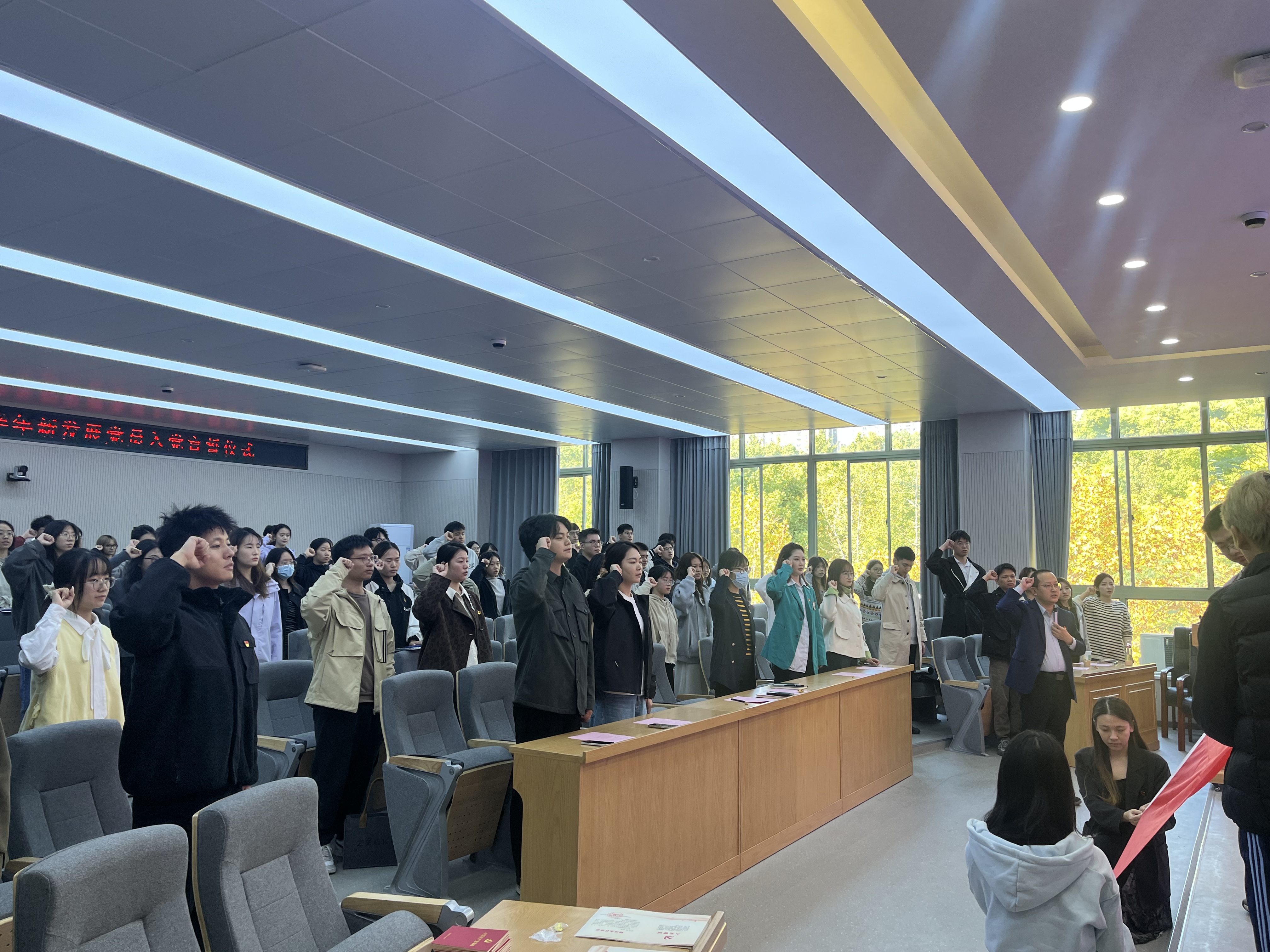 党委在学院楼202国际报告厅举行2025年上半年新发展党员入党宣誓仪式。学院党委书记朱旭明、党委副书记陈思佳,各学生党支部书记、党建指导老师、老党员代表以及全体新发展党员参加了仪式。仪式由专职组织员翟丽媛主持。