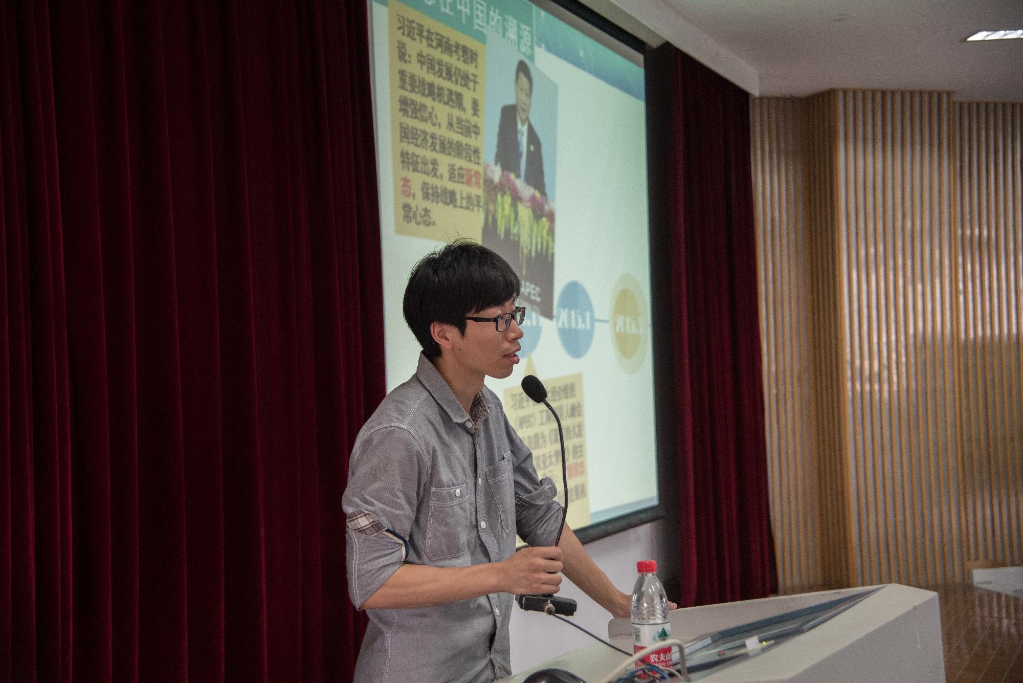 5月19日,水果派 辅导员蒋超与王维维老师分别就深入阐释我国经济发展“新常态”与学习贯彻习近平主席系列重要讲话精神等问题展开讨论,为水果派 大一大二的学生们带来了两节精彩的形势政策课。下午15:00,蒋超老师于A201教室开课。他以中国经济四大困难...