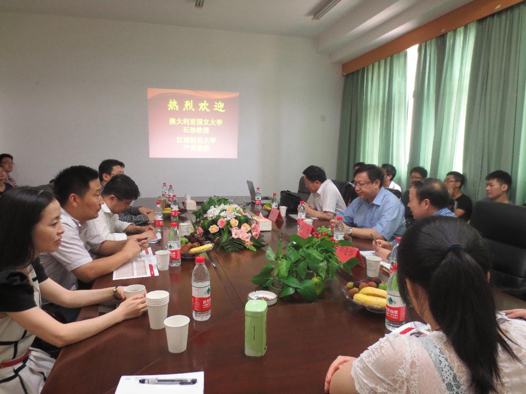 6月5日下午14:30,澳大利亚国立大学(Australian National University)石劲教授来水果派与水果派教师、研究生进行学术交流。李连华院长首先代表水果派 对石劲教授的到来表示热烈欢迎。石劲教授在座谈中介绍了他在公司治理、红利政策、基金管理、新股的发行...